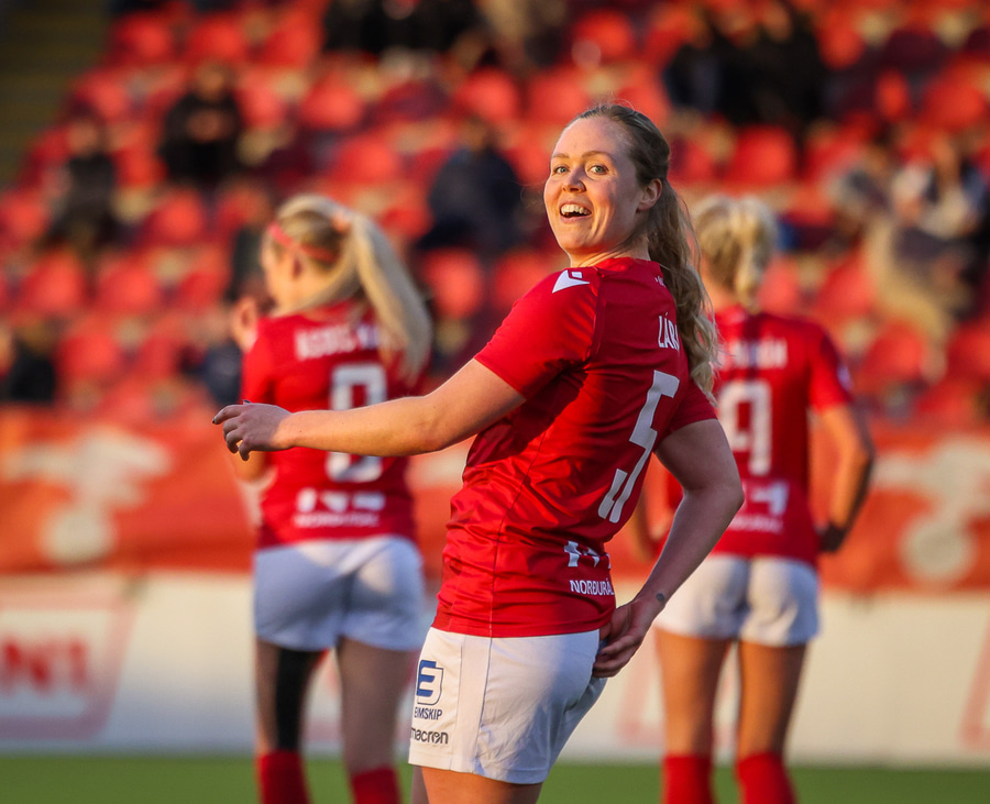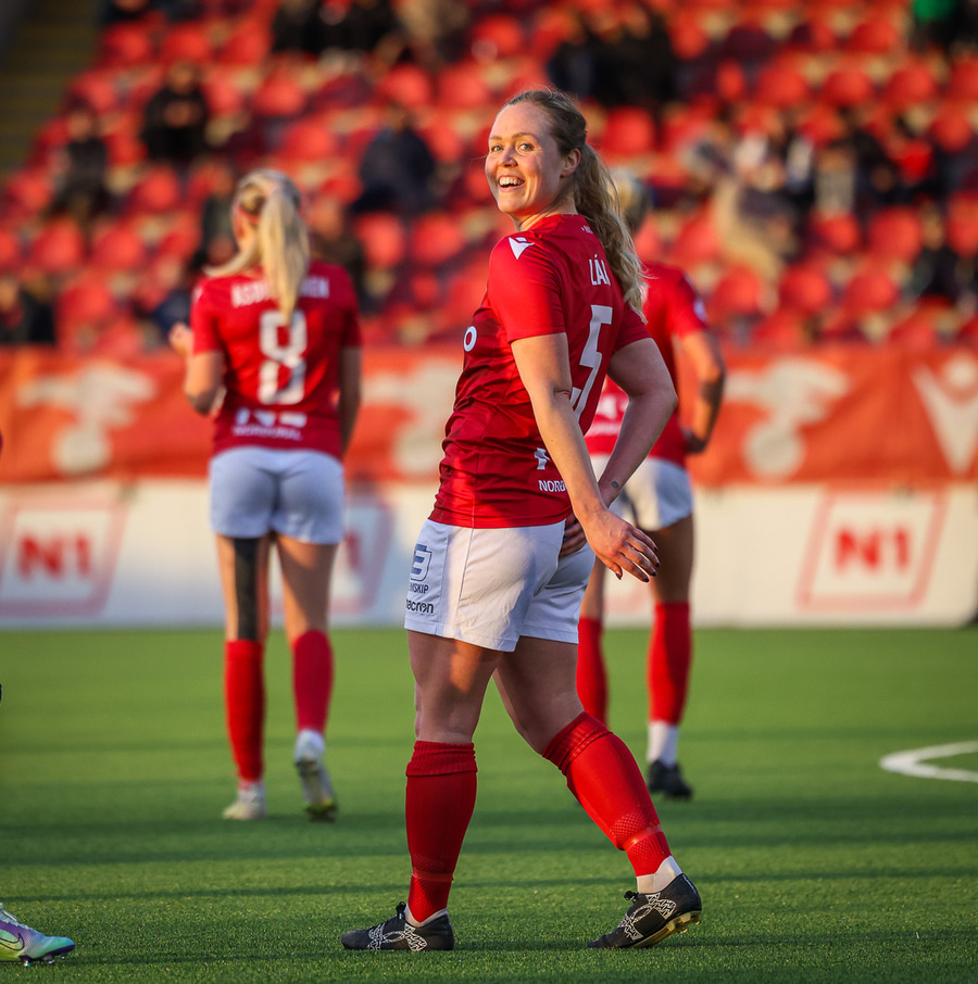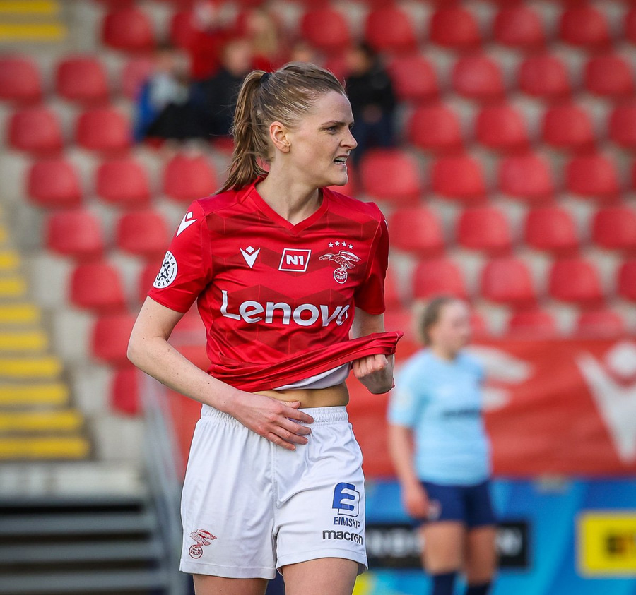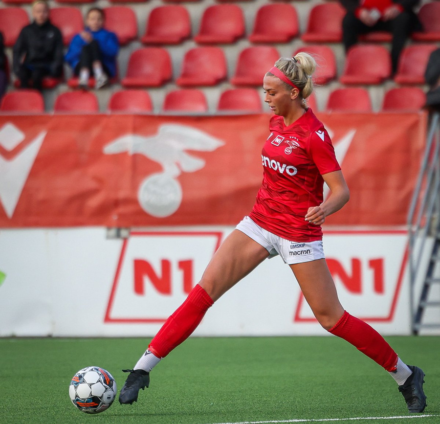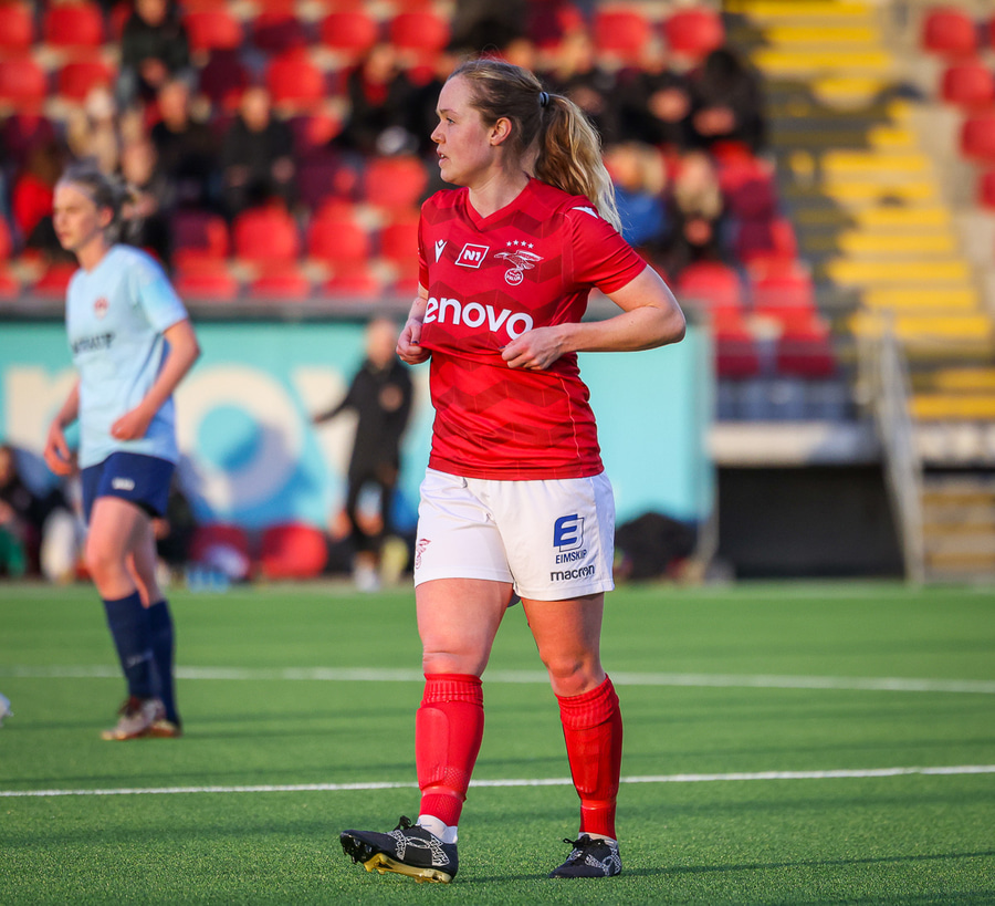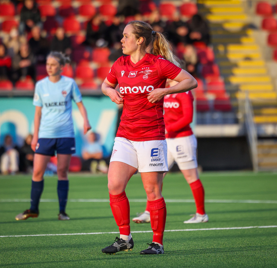 Mist er gríðarlega sterk í loftinu! Markið sem hún skoraði gerði hún þó með fætinum.