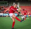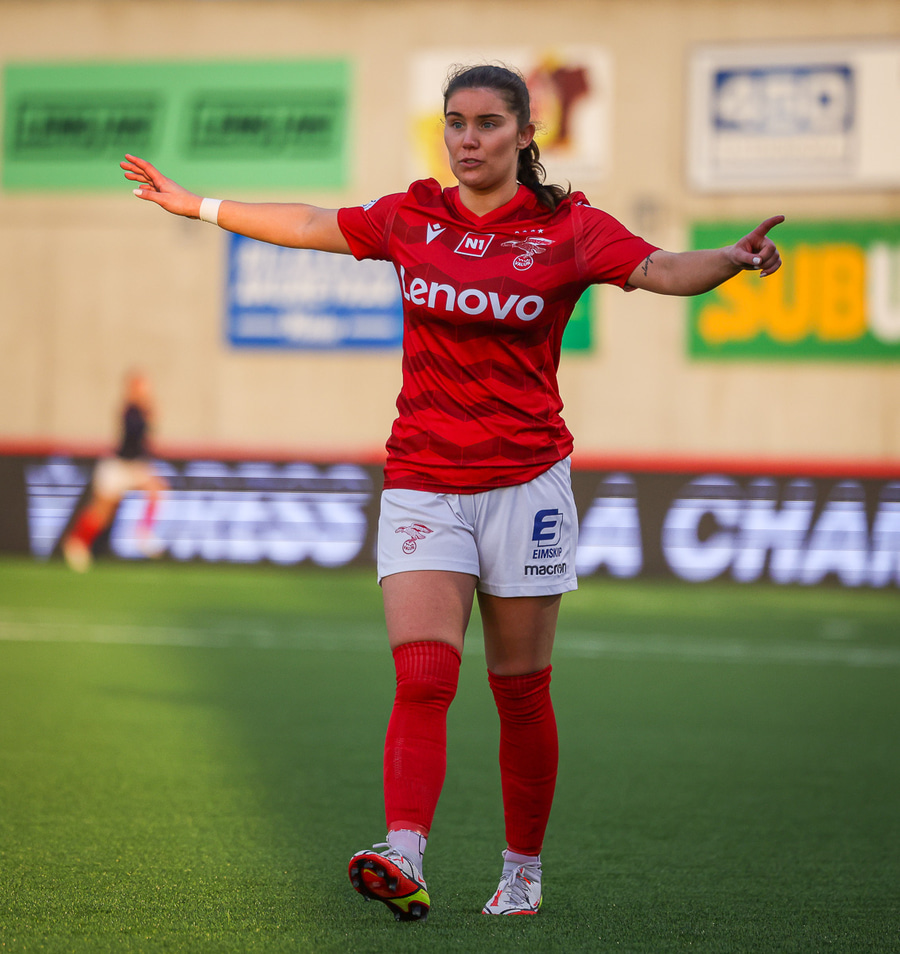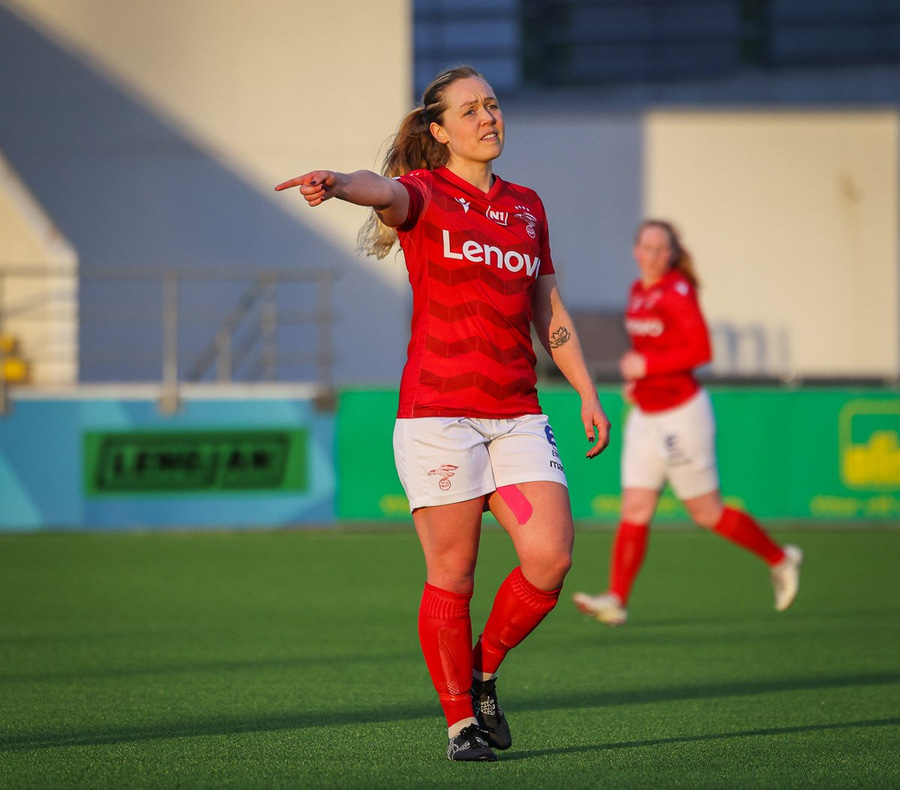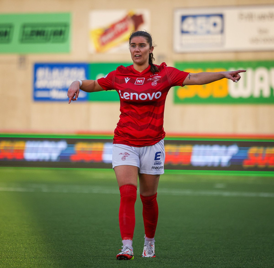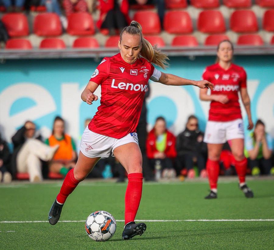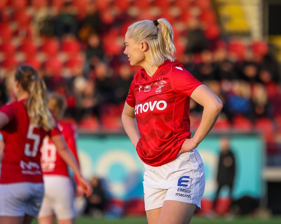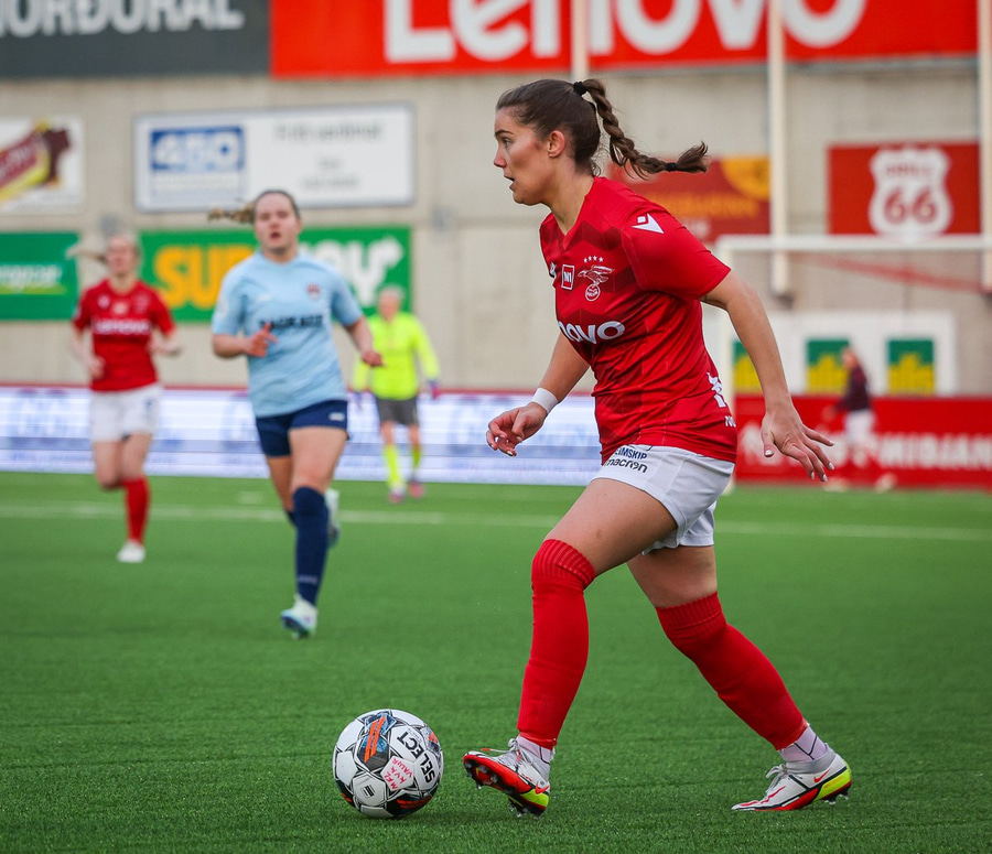 Mist er gríðarlega sterk í loftinu! Markið sem hún skoraði gerði hún þó með fætinum.