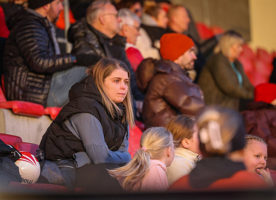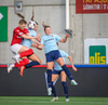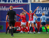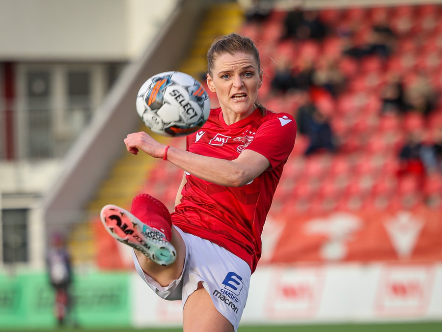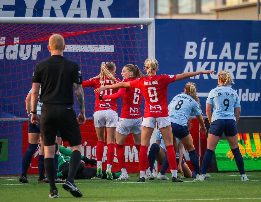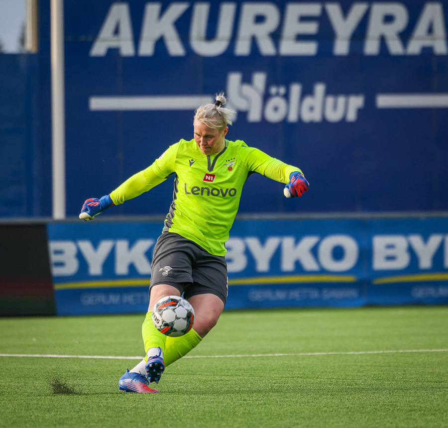 Andrea Rut tekur setur boltann fyrir úr aukaspyrnunni en Sandra slær hann frá.