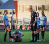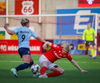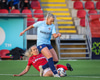Mist brýtur á Kötlu sem ætlaði að skjóta sér framhjá henni og upp í vinstra hornið. Fær gult að launum og Þróttarar aukaspyrnu.