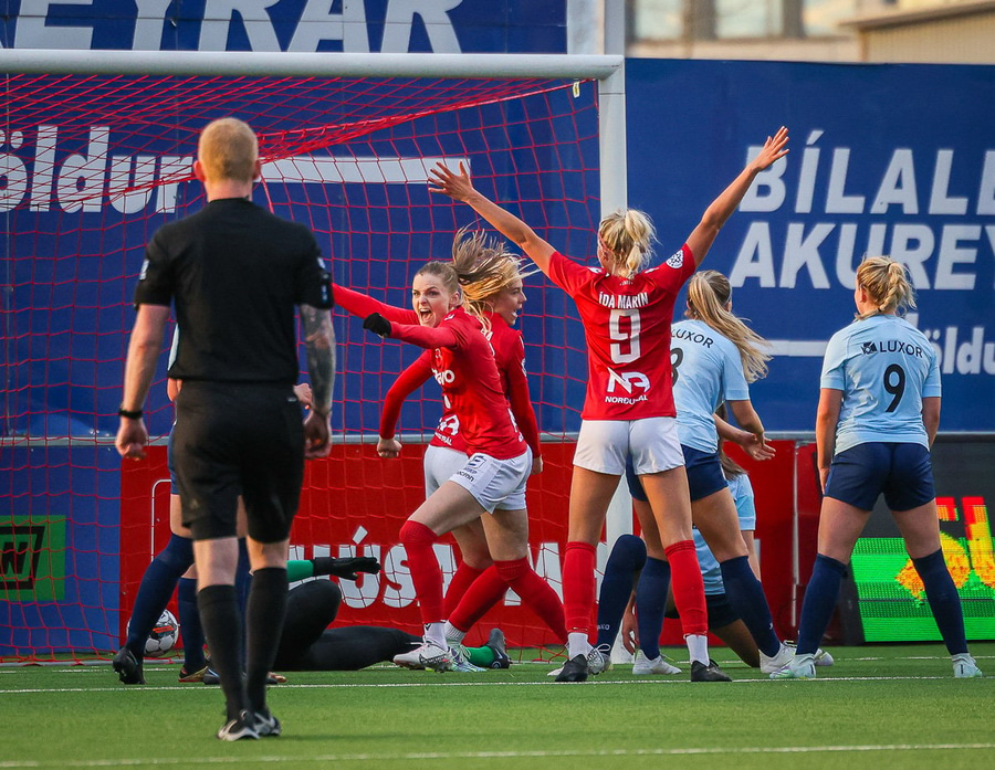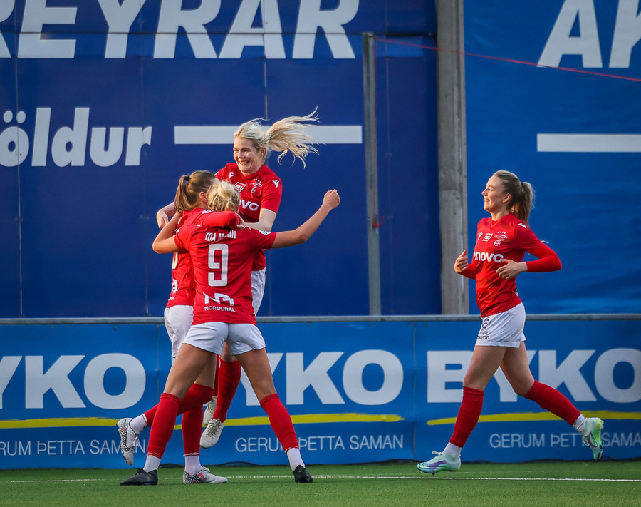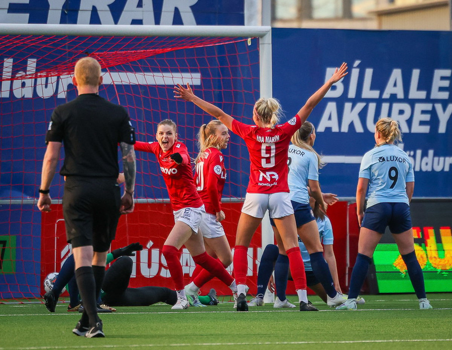 Miðverðirnir Arna Sif og Mist sáu um markaskorunina en bæði mörkin komu eftir hornspyrnur.