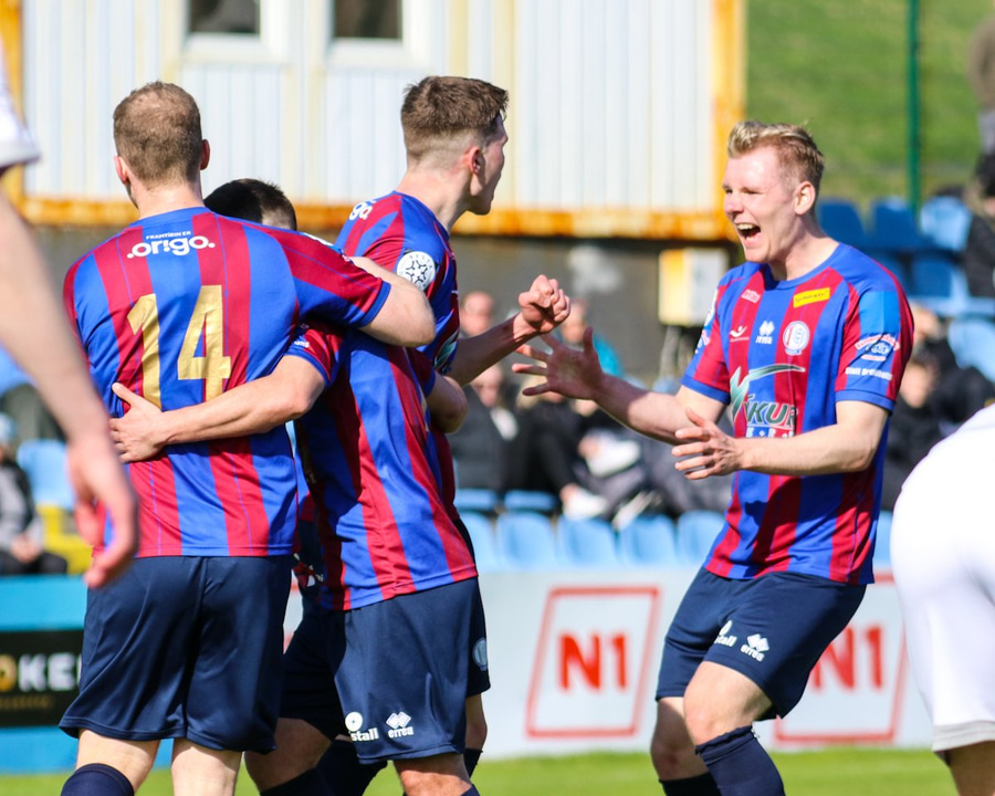 Fyrsta markið er komið! Andri Rúnar kemur hér boltanum í netið með skoti af stuttu færi eftir sendingu frá Guðjóni Pétri.