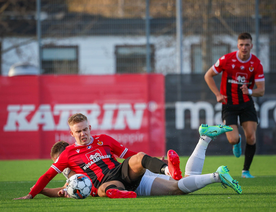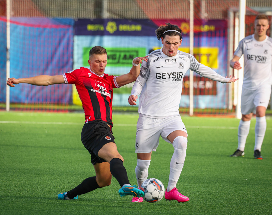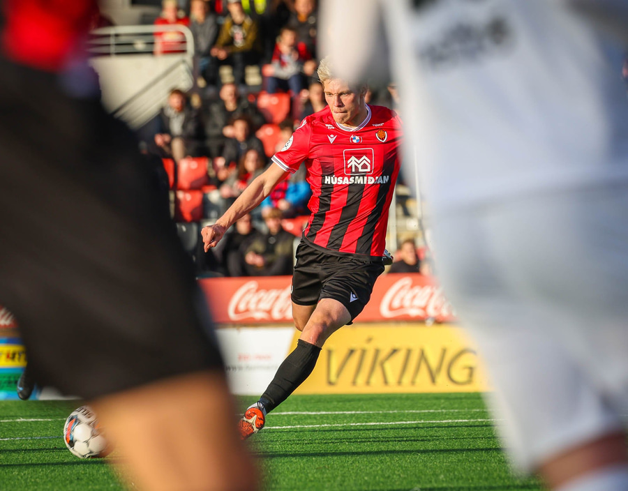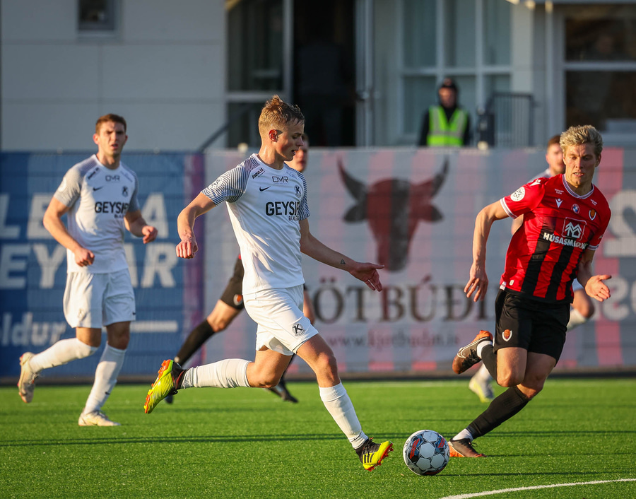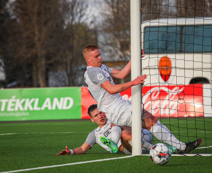 Viktor Örlygur með sendinguna inn fyrir og finnur Erling en hann er dæmdur rangstæður. AD1 með þetta allt í teskeið.