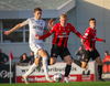 Patrik með skot inn á teig Víkings en Halldór Smári hendir sér fyrir og þessi bolti skýst yfir markið.