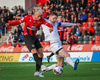 Davíð með fyrirgjöf af vinstri kantinum og finnur Erling inn á teignum. Skallinn frá Erlingi fer framhjá.