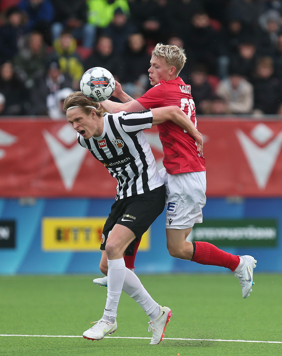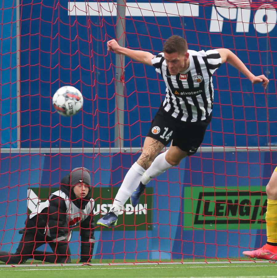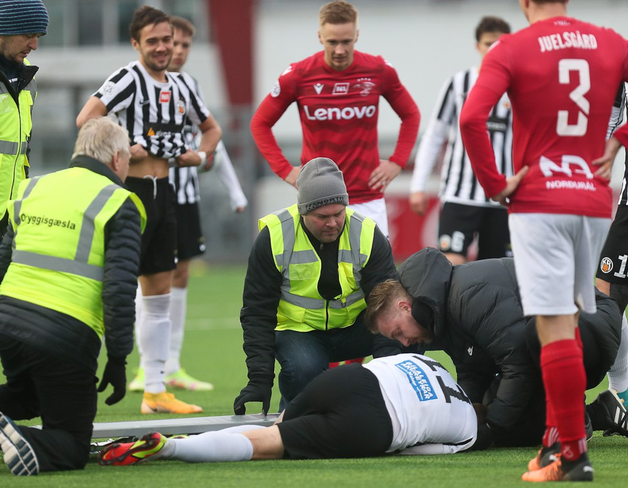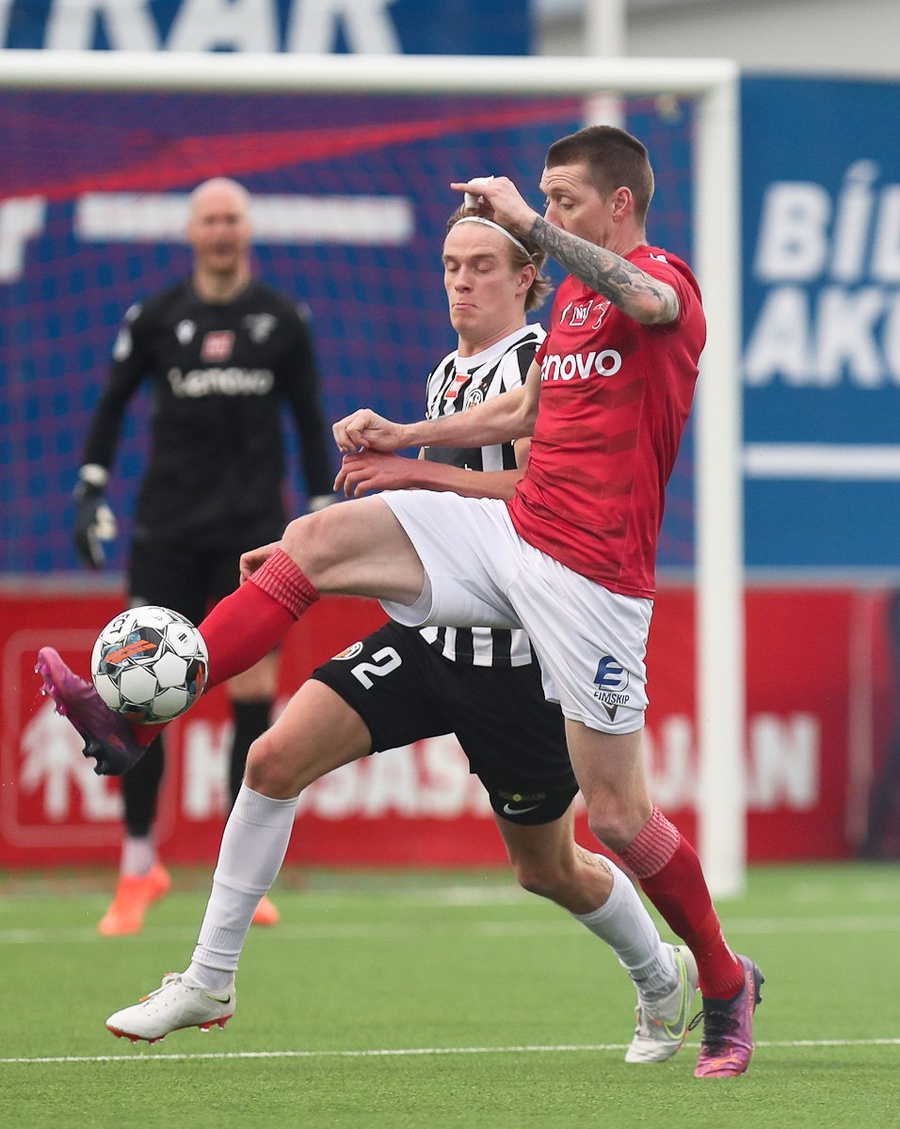 Í þeirri seinni var það Jesper Juelsgård sem skallaði boltann frá.