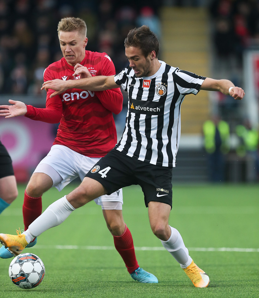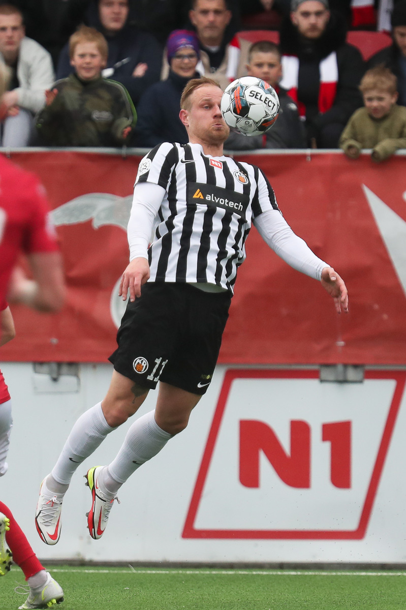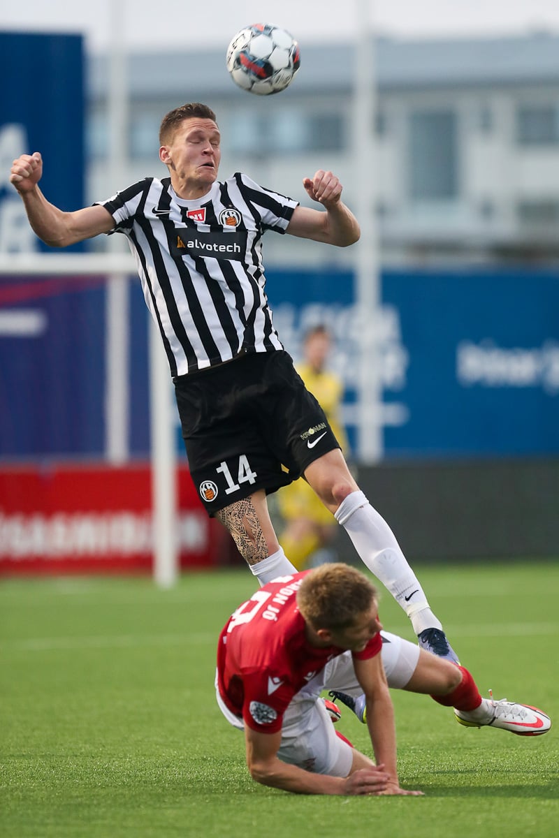 Í þeirri seinni var það Jesper Juelsgård sem skallaði boltann frá.