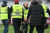 Fyrst var það Hedlund en nú er það Kennie Chopart sem liggur og þarf aðhlynningu frá Valgeiri Viðarssyni sjúkraþjálfara KR-inga. Einar Óli Þorvarðarson sjúkraþjálfari Vals er einnig mættur inná völlinn og fylgist með.