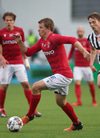 Pálmi Rafn með frábæra sendingu upp völlinn, frá vinstri yfir á hægri vænginn, yfir Jesper Juelsgård og sendingin frá Kennie hárnákvæm.