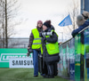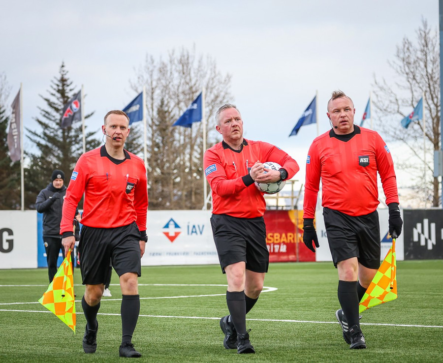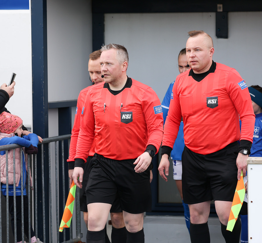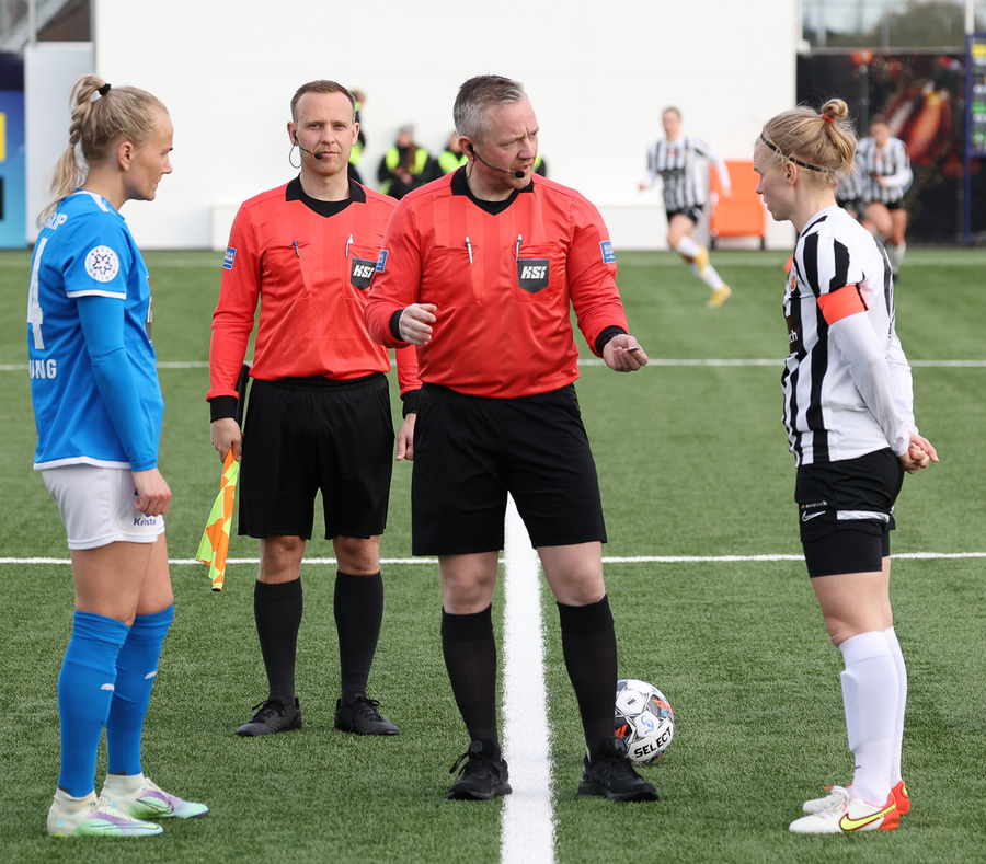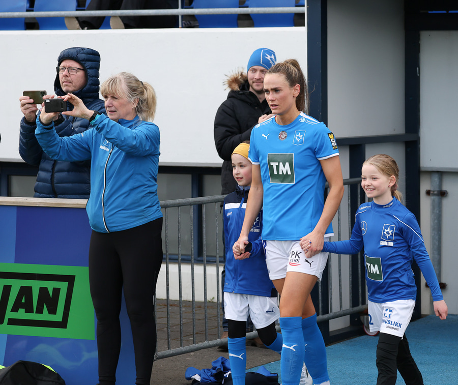 Það styttist í leik og Bestu deildar lagið ómar um Garðabæinn á meðan liðin ganga út á völl ásamt dómurum.