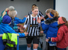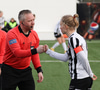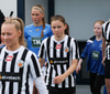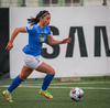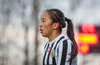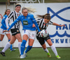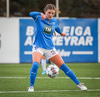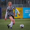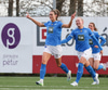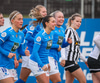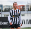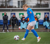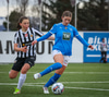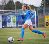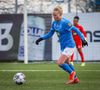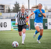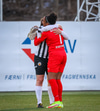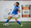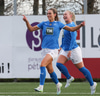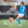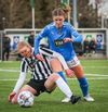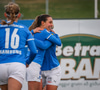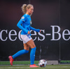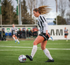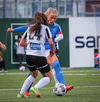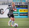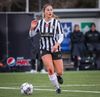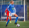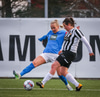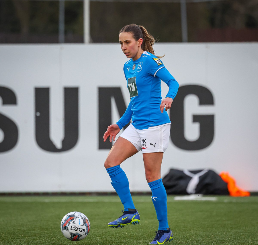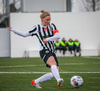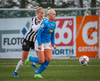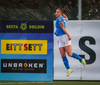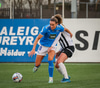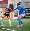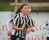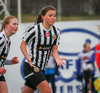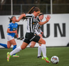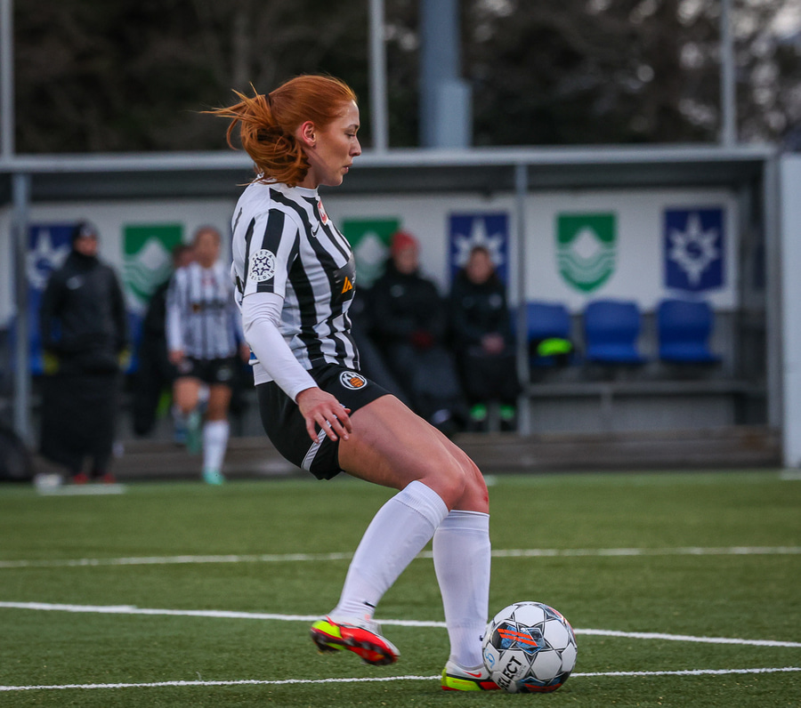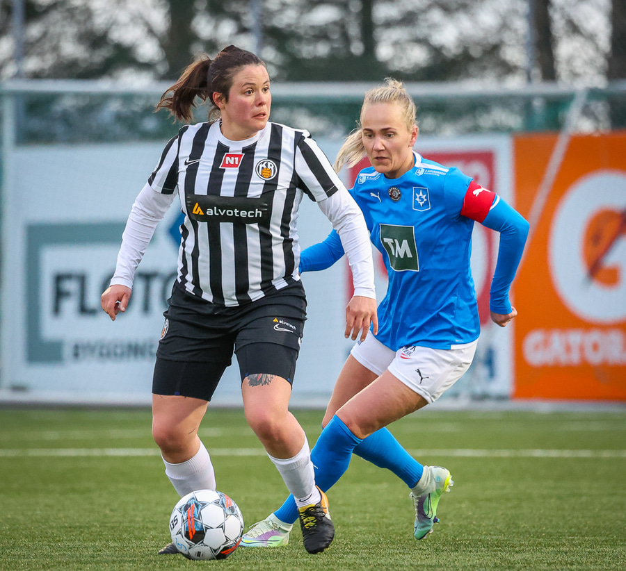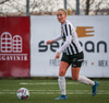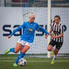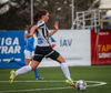 Vinnur boltann af Margaux sem rennur klaufalega og Alma bara stingur hana af og setur boltann í fjærhornið.