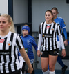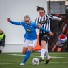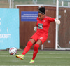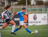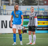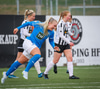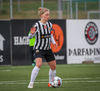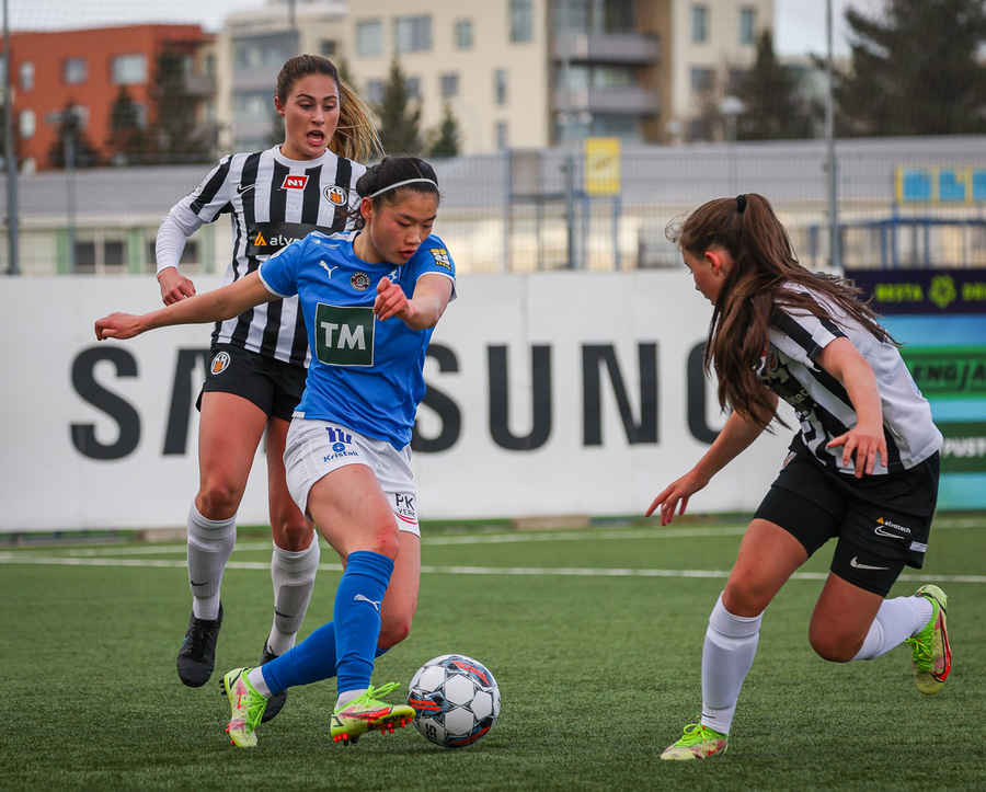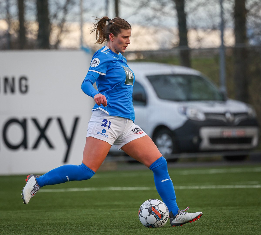 Gumma fljót að koma sér í boltann og þræðir boltann inn á Margaux á skot á markið en Chante ver í horn.