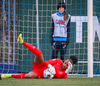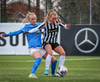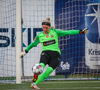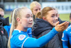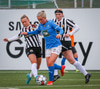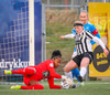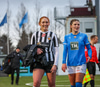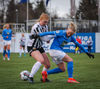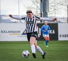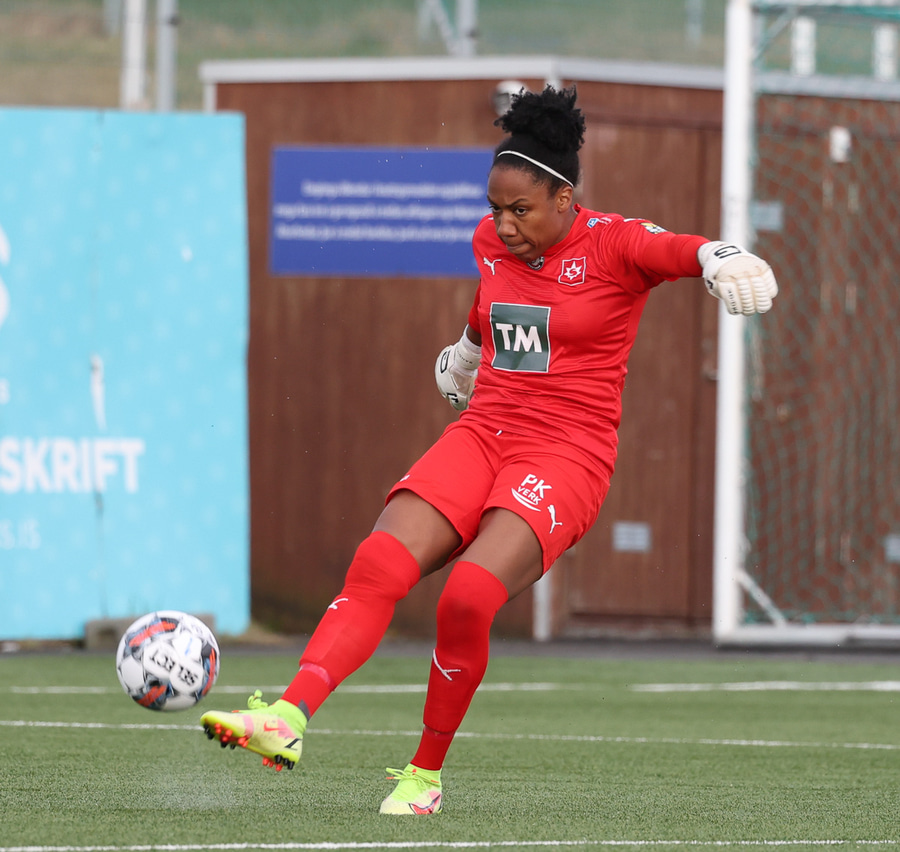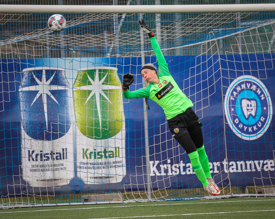 Snædís María við það að koma boltanum í netið eftir sendingu frá Jasmínu en Laufey ver vel.