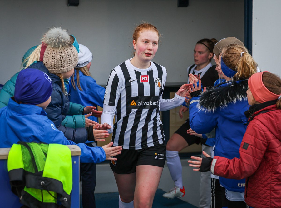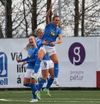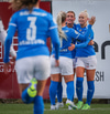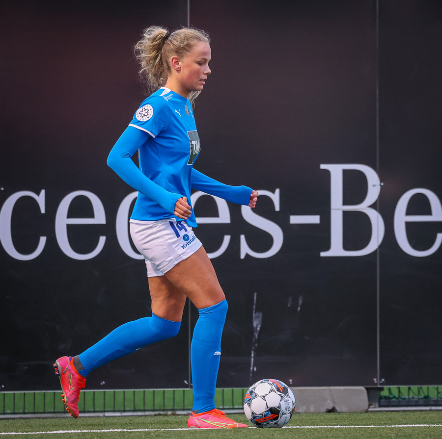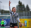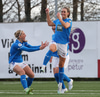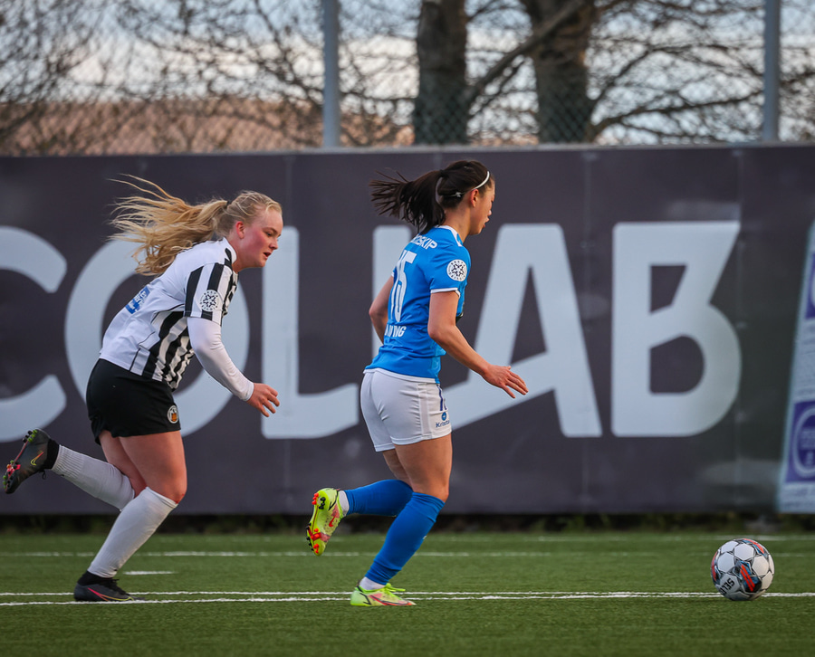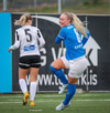 Gyða ætlar að þræða boltann inn fyrir á Jasmín sem missir boltann frá sér en Alma er fljót að átt sig og nær boltanum, fer upp að endalínu og setur boltann beint á kollinn á Katrínu sem skallar hann í boltann í opið markið.