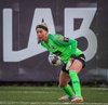 Bergdís reynir skot langt utan af velli sem skoppar til Chante í marki Stjörnunnar