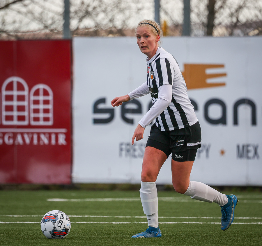 Alma kominn upp að endalínu í fyrirgjafastöðu en Hildur nær að koma boltanum í horn.