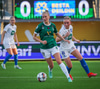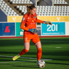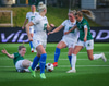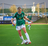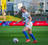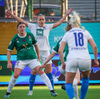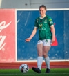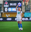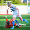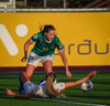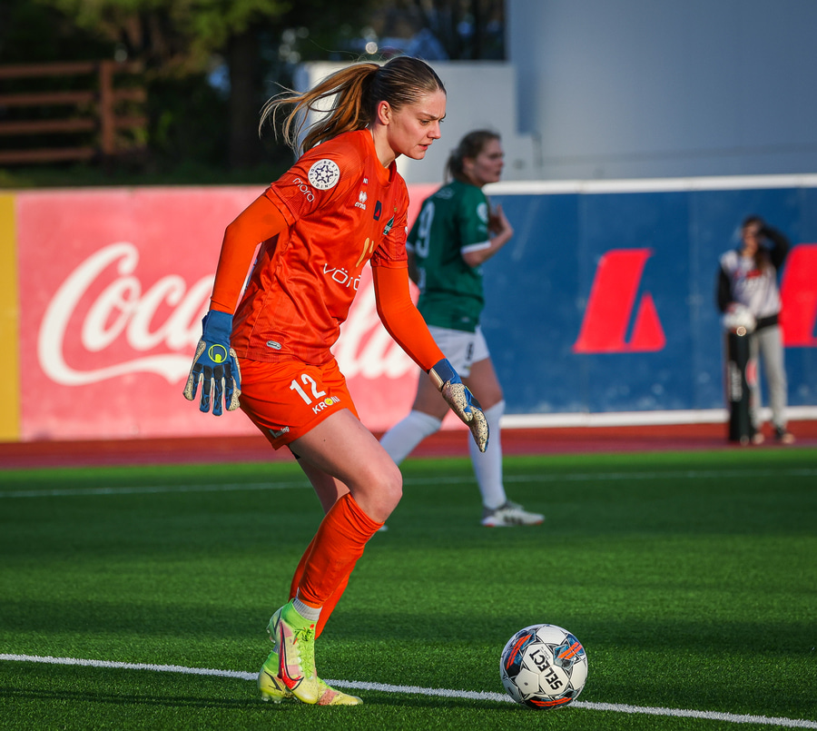 Anna Petryk með aukaspyrnu á miðjum velli sem flýgur í gegnum allan pakkann í lúkurnar á Chante í markinu