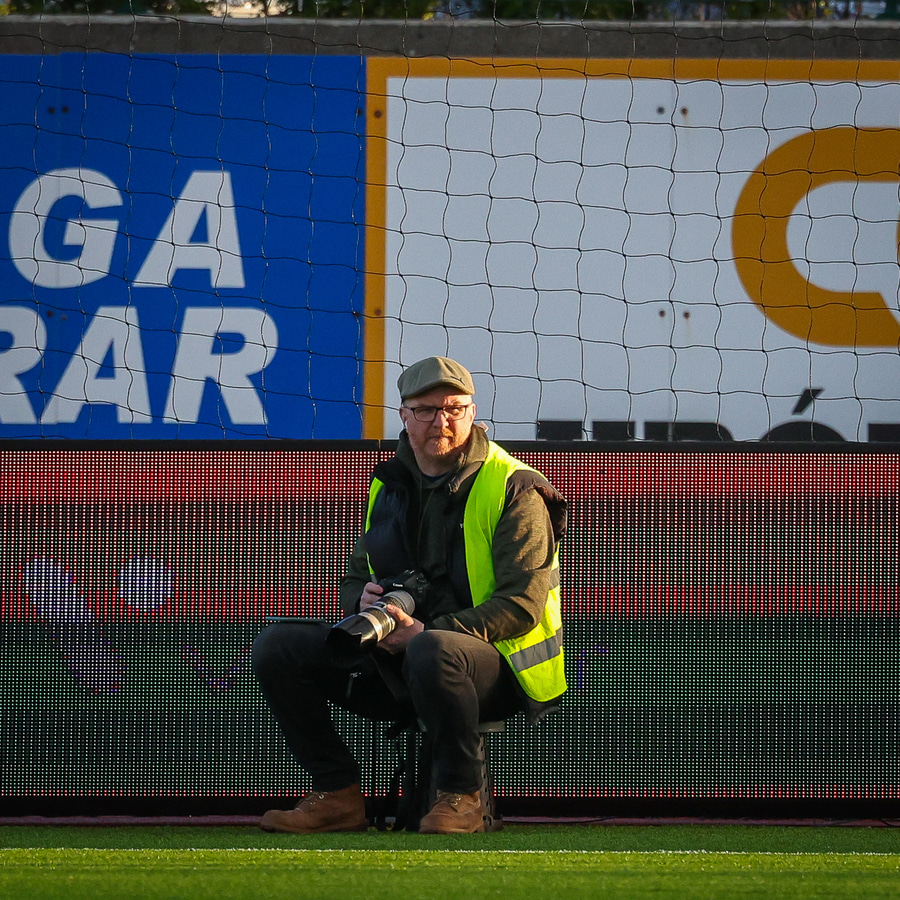 Stef Bestu Deildarinnar hljómar þessa stundina og leikmenn ganga inn á völlinn. Anna Petryk er eins og áður með Ukraínska fánann vafinn um sig. Gaman að sjá.