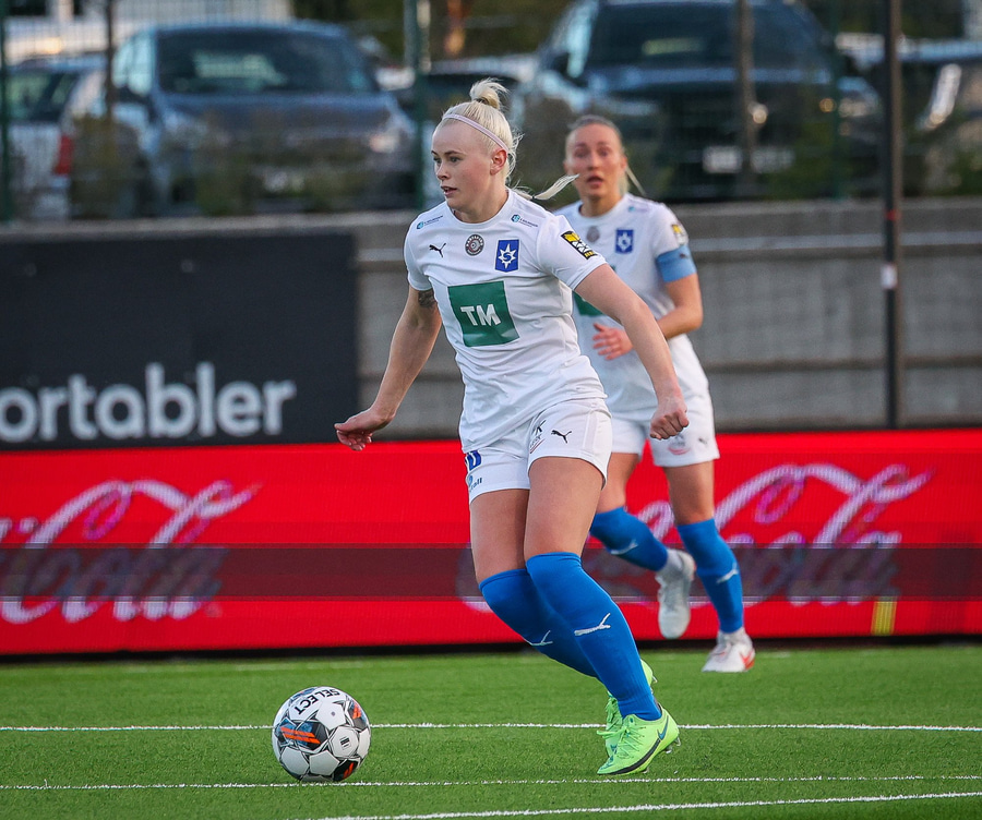 Eftir fínt spil á Alma fyrirgjöf fyrir sem Telma missir en nær svo í annari tilraun.