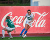 Melina á sendingu í gegn á Hildi sem dettur og setur skrýtinn bolta í stöngina!