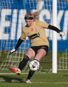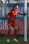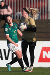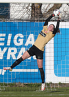 Taylor með fast skot utan af marki sem Björk varði glæsilega meó fótunum eins og handboltamarkvörður.