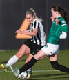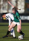 Hröð sókn hjá KR, Guðmunda sendir til hægri á Marcella Marie Barberic sem skaut að marki en vel yfir.