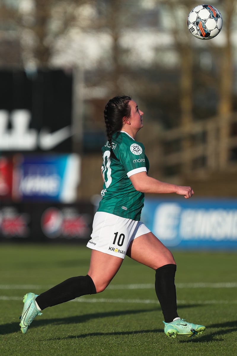 Enn ein fyrirgjöf Ástu ratar til Alexöndru sem skaut föstu skoti rétt framhjá markinu.