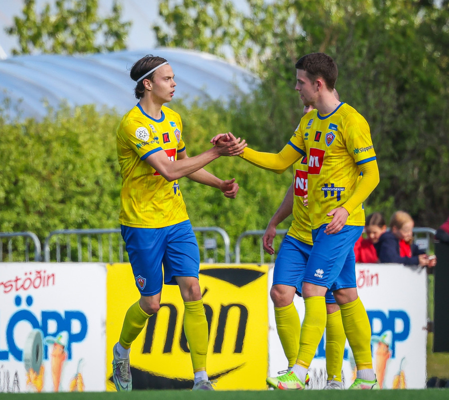 Nökkvi Þeyr skorar af stuttu færi eftir góðan undirbúning frá Oleksii Bykov.
