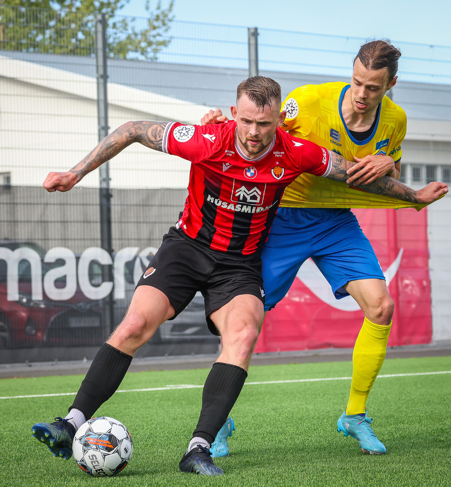 Varamennirnir með góða tilraun. Viktor Örlygur finnur Birni Snær í skotfæri en skotið er beint á Stubb.