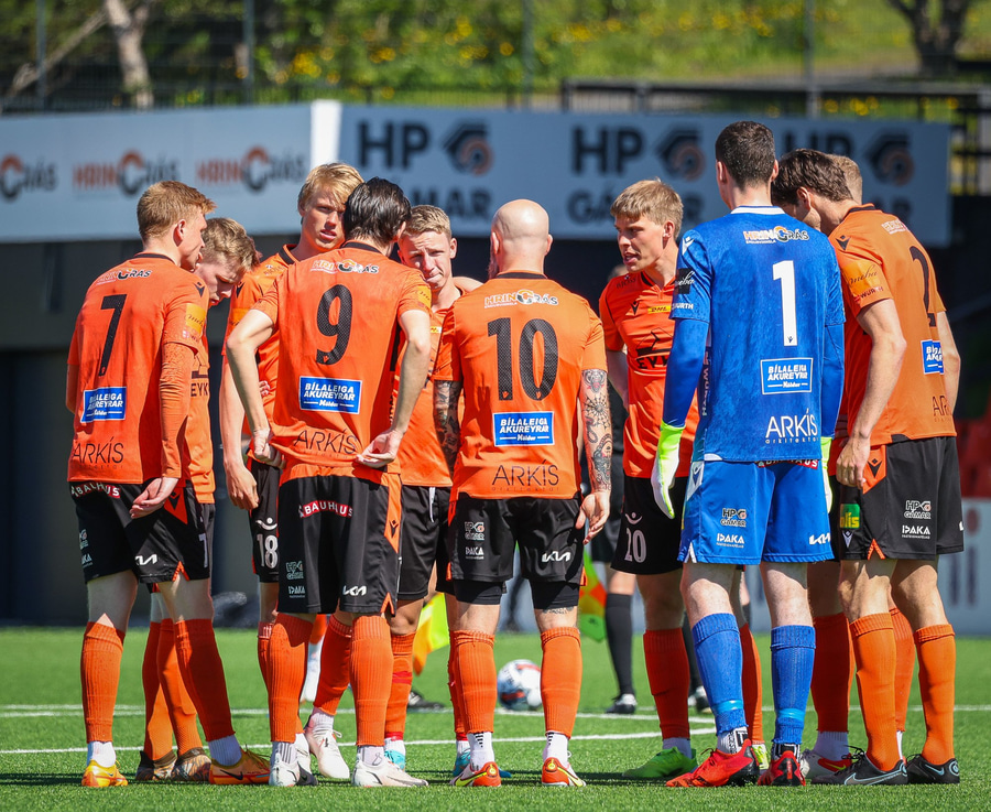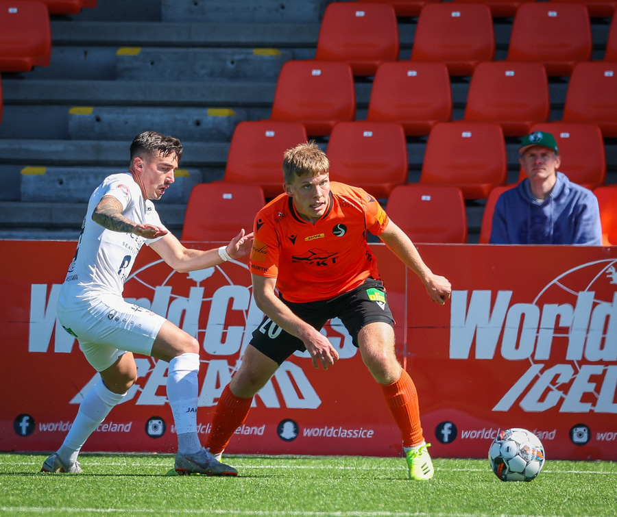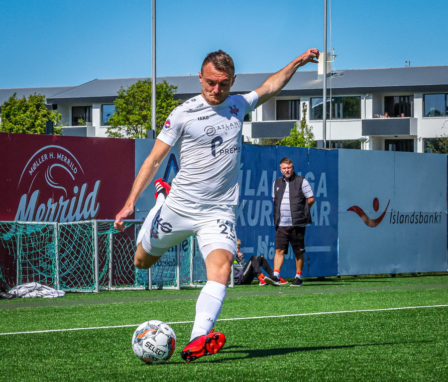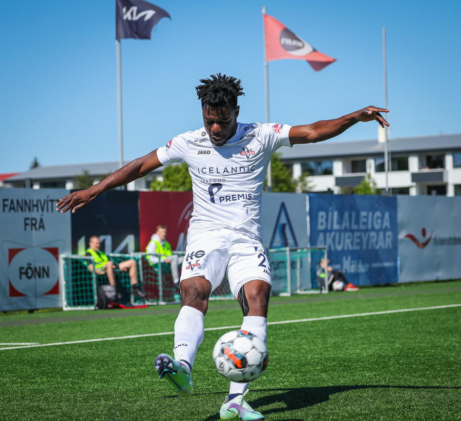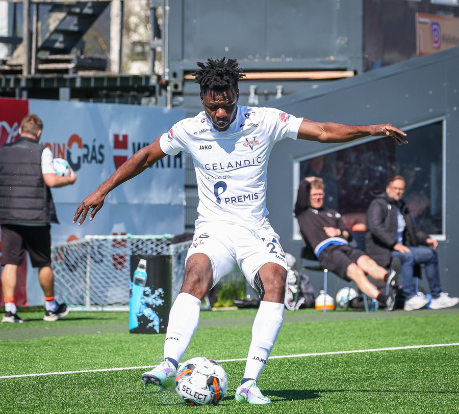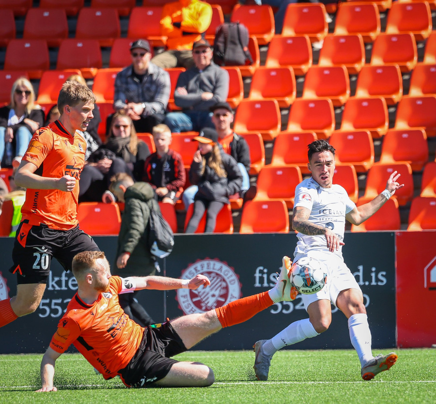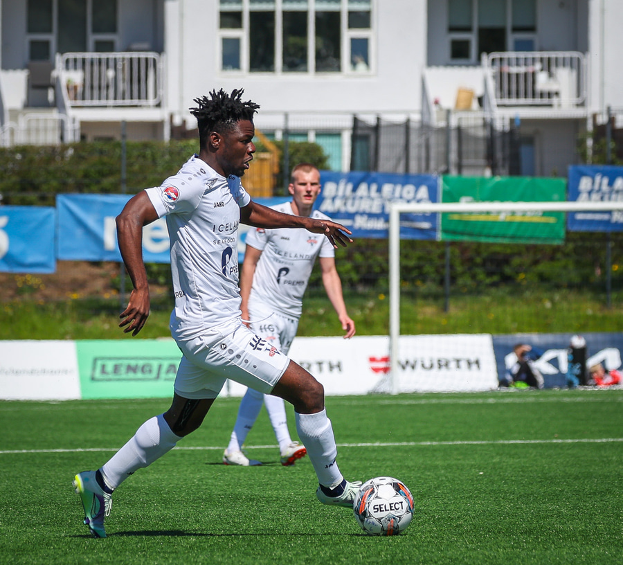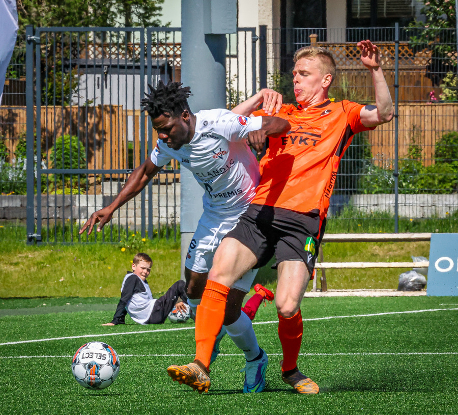 Deniz Yaldir verið rosalega líflegur hérna í byrjun leiks. Fær boltann út til vinstri og boltinn af Halli Húna og afturfyrir endarmörk.