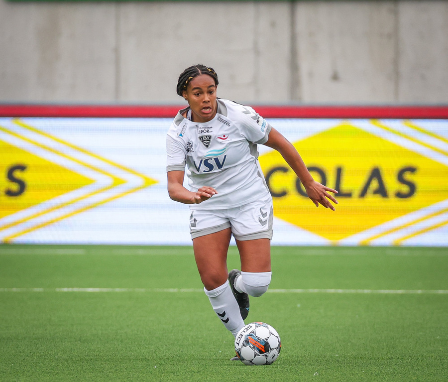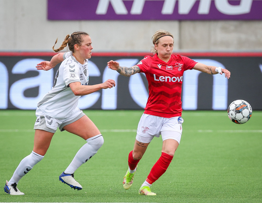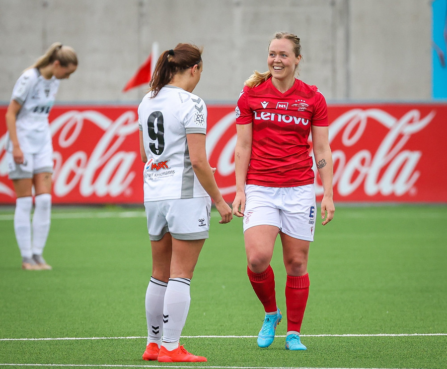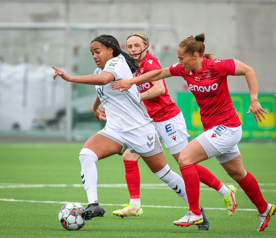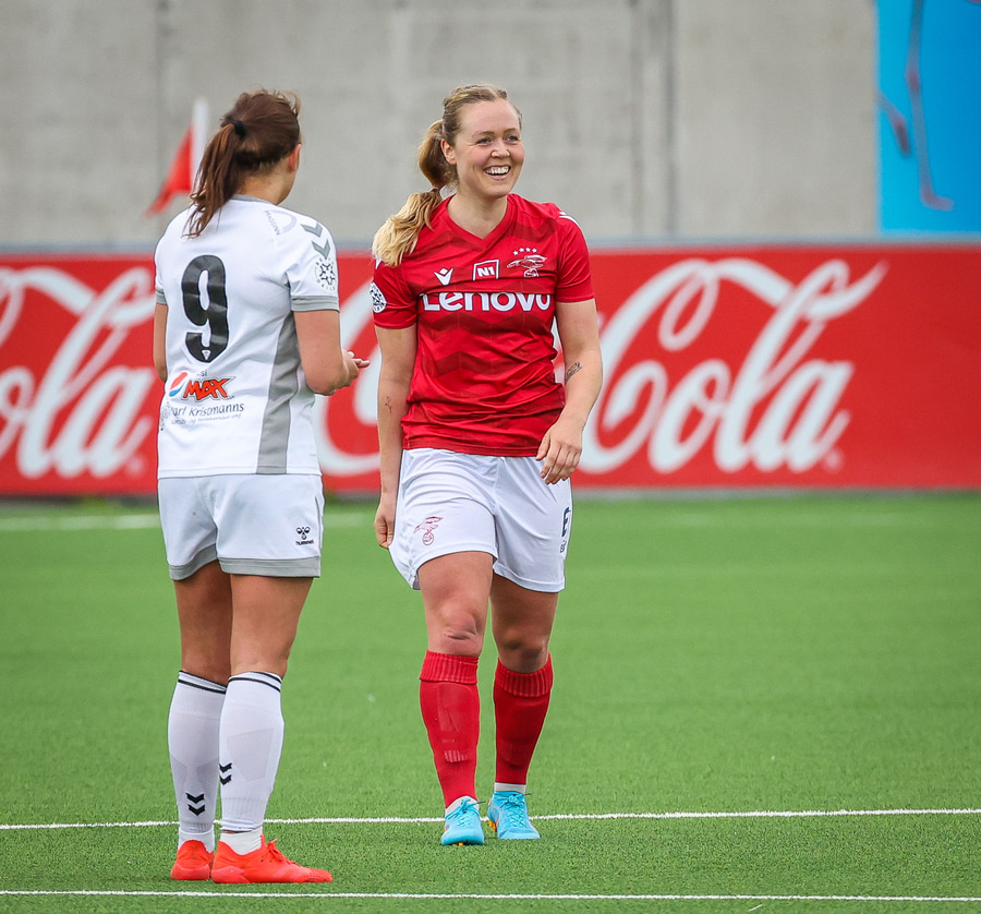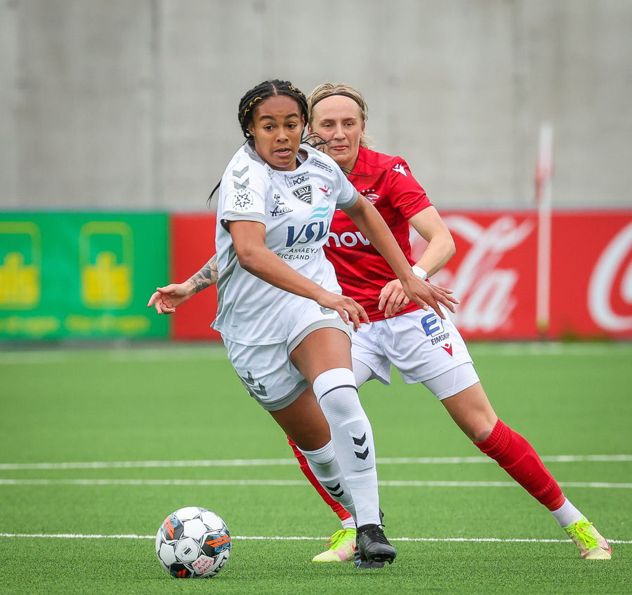 Brookelynn á hér fínasta skot fyrir utan teig en Guðný ver vel í marki gestanna.