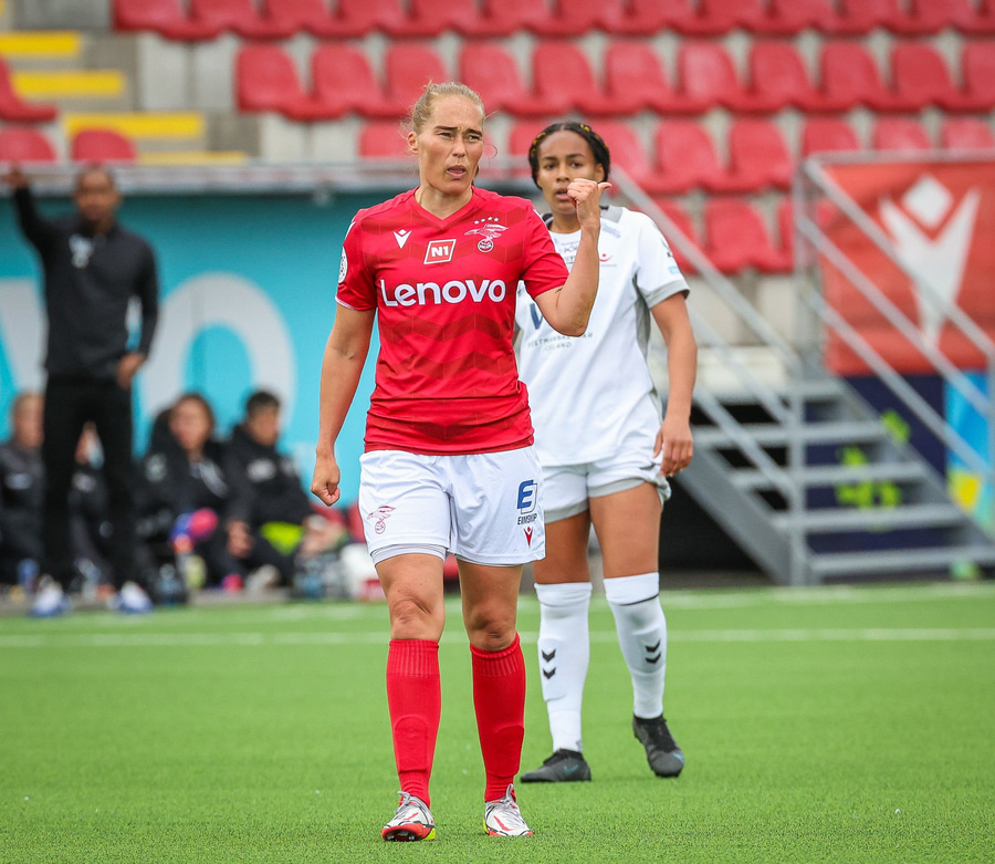 Lára Kristín gefur skelfilegan bolta til baka sem ratar beint á Söndru sem er komin ein í gegn og klárar frábærlega fast, niðri og til vinstri.