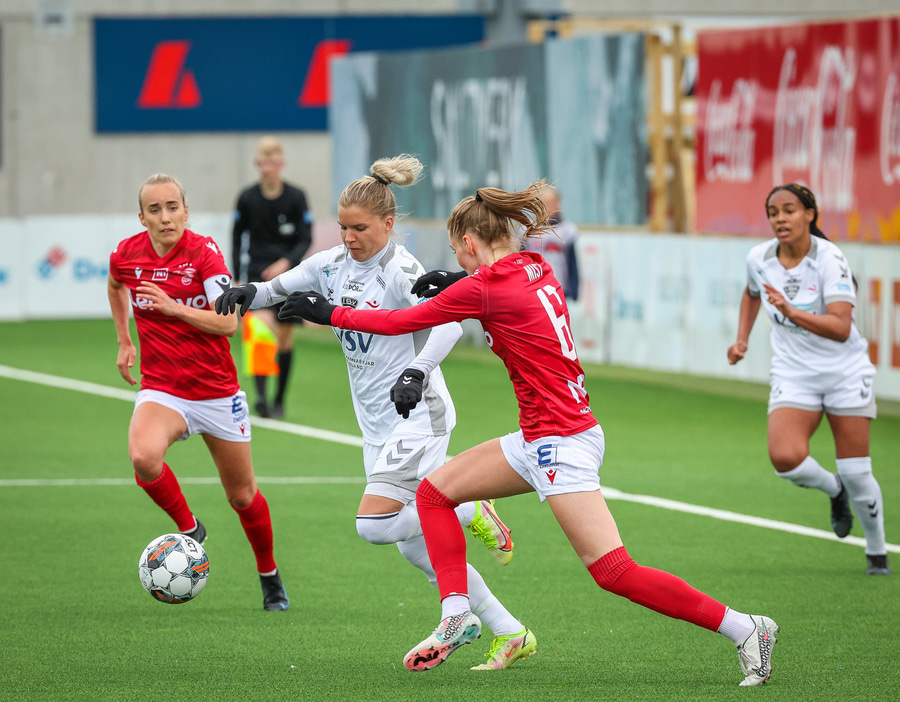 Valskonur spila hérna flottan fótbolta í góðri sókn sem endar þó með misheppnaðri fyrirgjöf frá Ásdísi sem endar í markspyrnu.