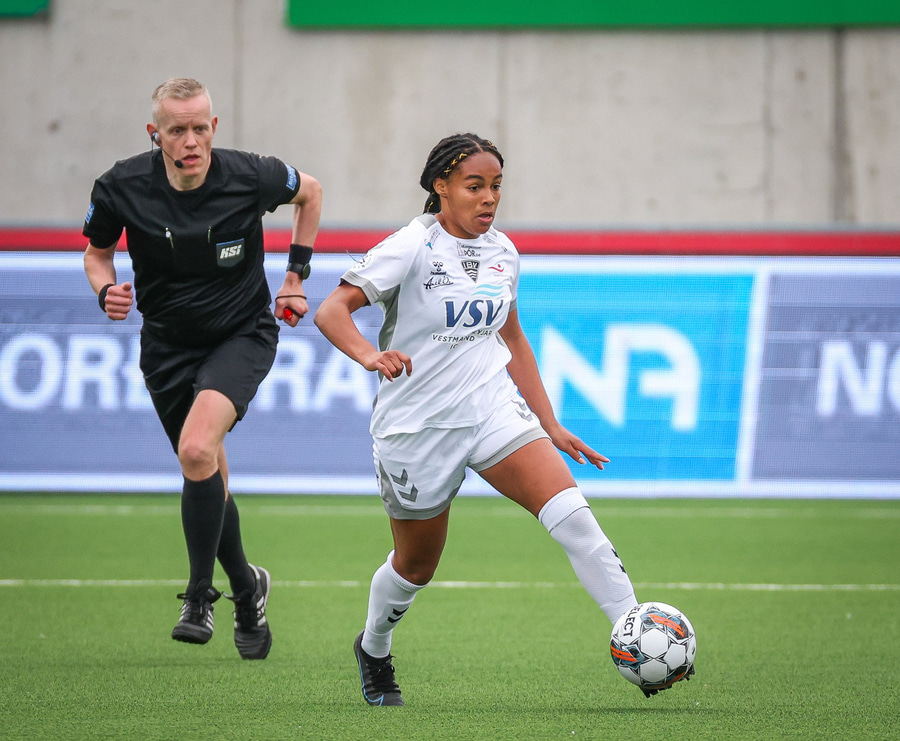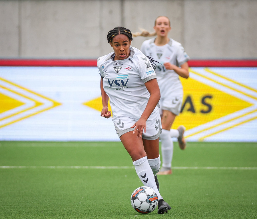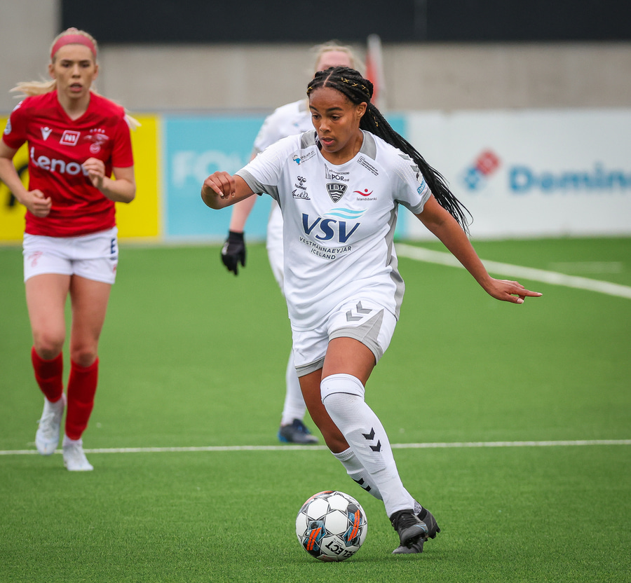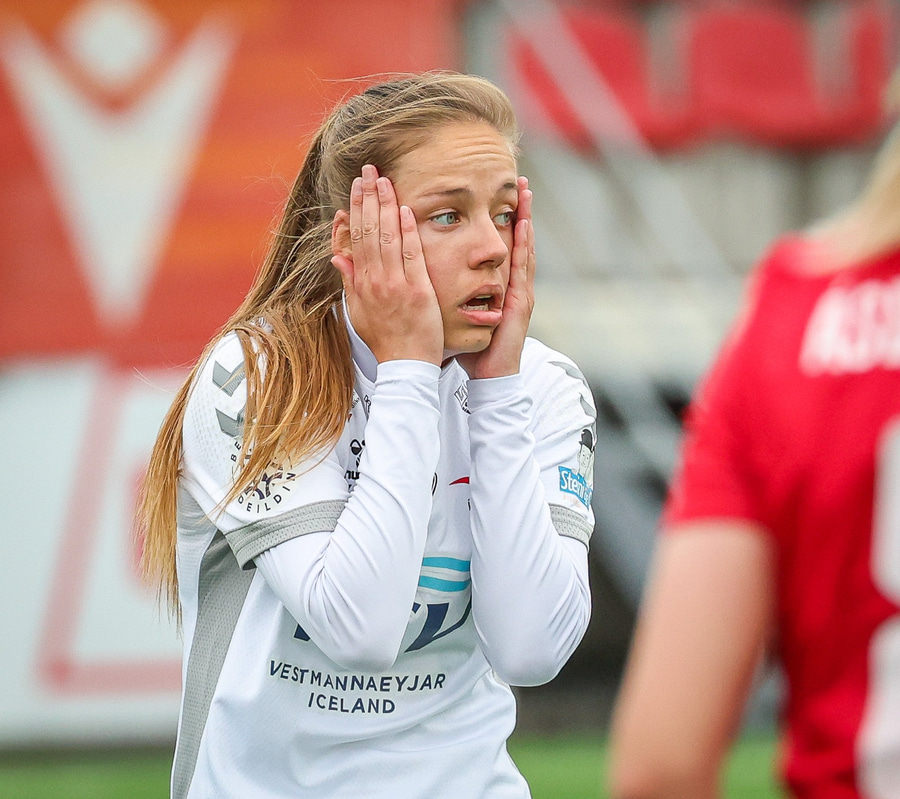 Ameera kemur með frábæran bolta í teigin á Olgu sem gefur boltann út á Söndru sem tekur skotið yfir, stórhættulegt færi úr góðri sókn ÍBV.
