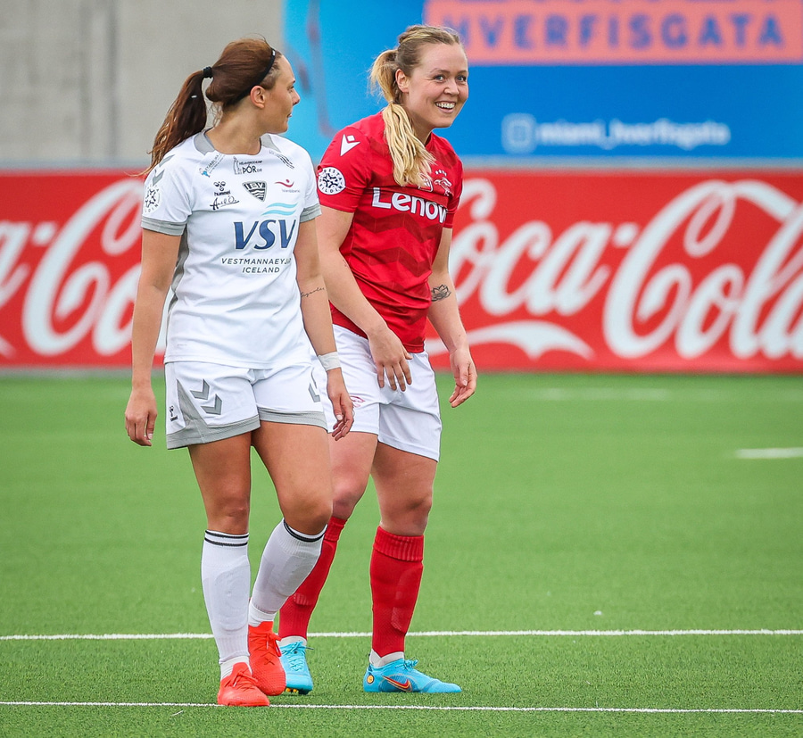 Eyjakonur byrjuðu með 5 manna vörn en eru núna komnar í 4 manna. Ragna Sara komin í hægri bakvörð og Sandra komin upp á kantinn.