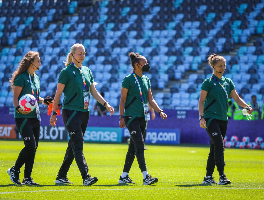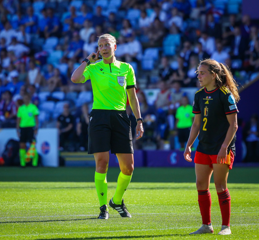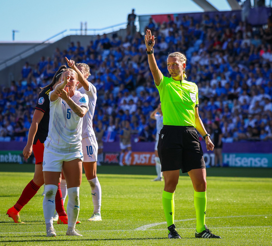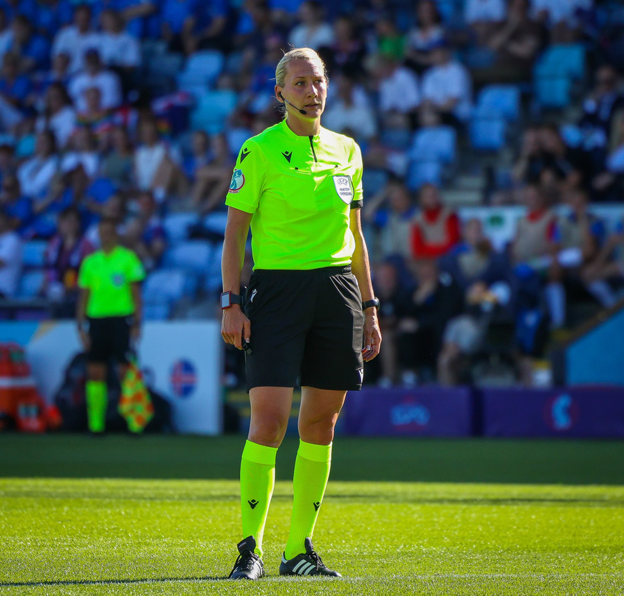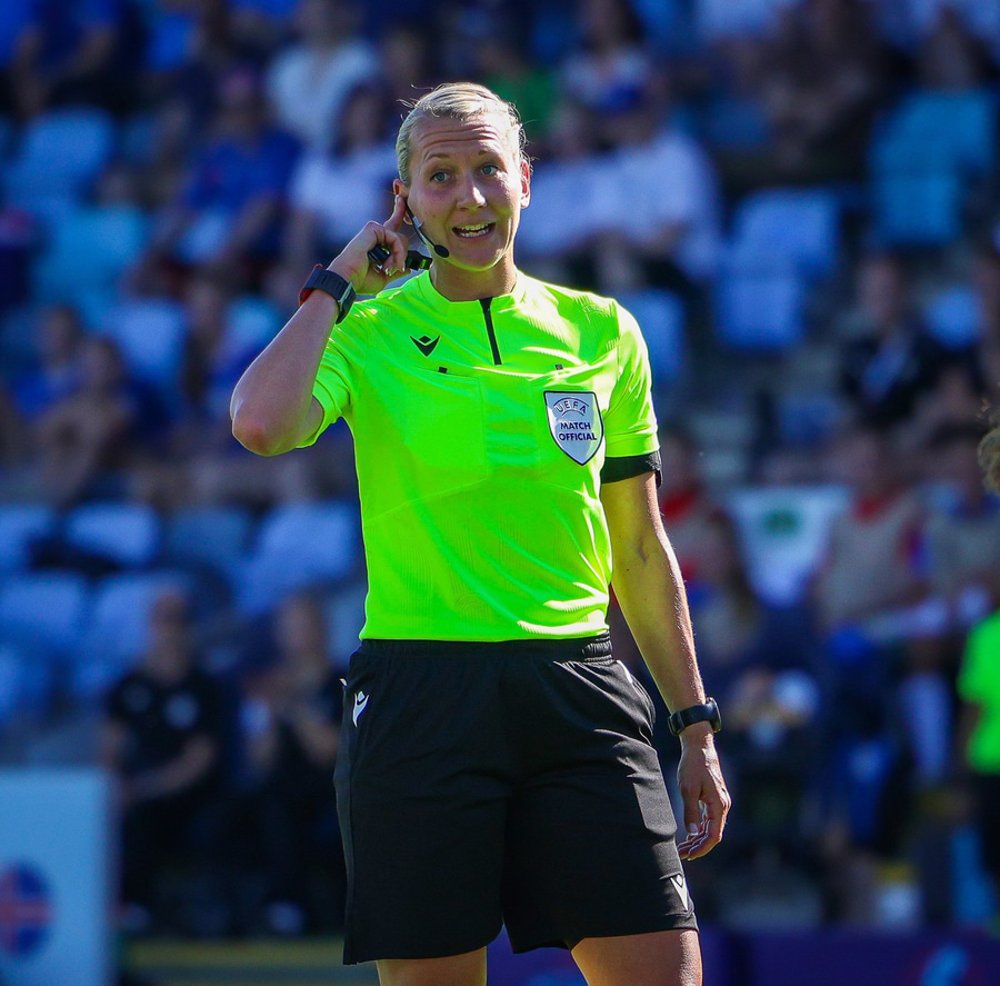 Tess Olofsson frá Svíþjóð er aðaldómari leiksins en aðstoðardómarar eru Almira Spahic frá Bosníu og Franca Overtoom frá Hollandi. Fjórði dómarinn kemur frá Makedóníu og hollenskir dómarar sjá um VAR myndbandsdómgæsluna.