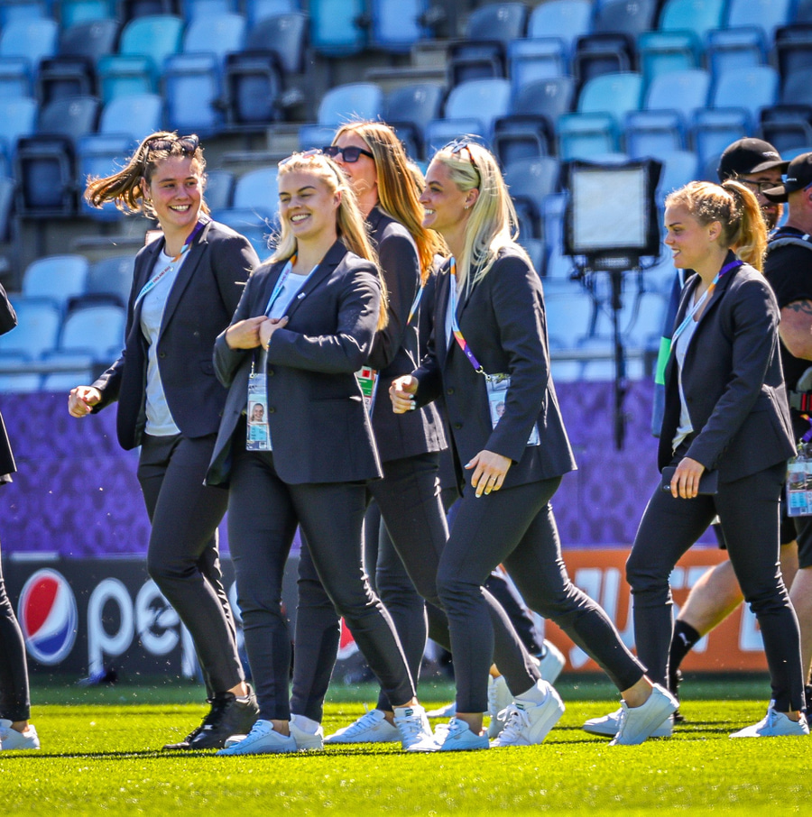 Stelpurnar gengu inn á völlinn rúmlega klukkutíma fyrir leik