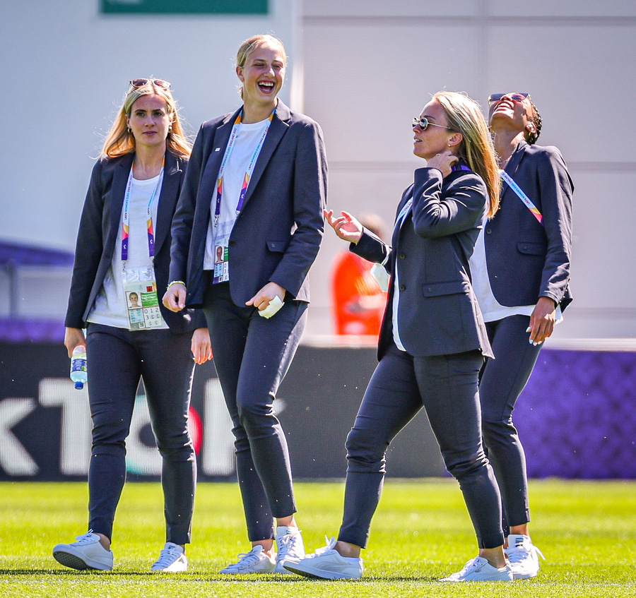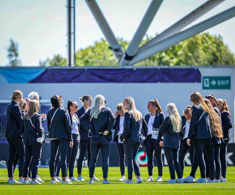 ,,Já, ég finn að spennustigið er lægra, það er ótrúlega rólegt og yfirvegað yfir hópnum. Það er ákveðin reynsla hjá þeim sem hafa farið áður á stórmót og líka komin miklu meiri reynsla hjá ungu leikmönnunum með því að spila í stórum deildum í dag og spila stóra leiki. Mér finnst ótrúlega gott jafnvægi í hópnum. Við erum rólegar, yfirvegaðar og okkur líður ótrúlega vel. Spennustigið er mjög gott."