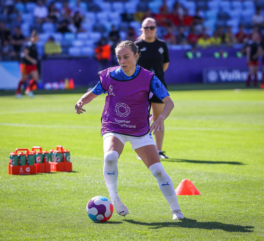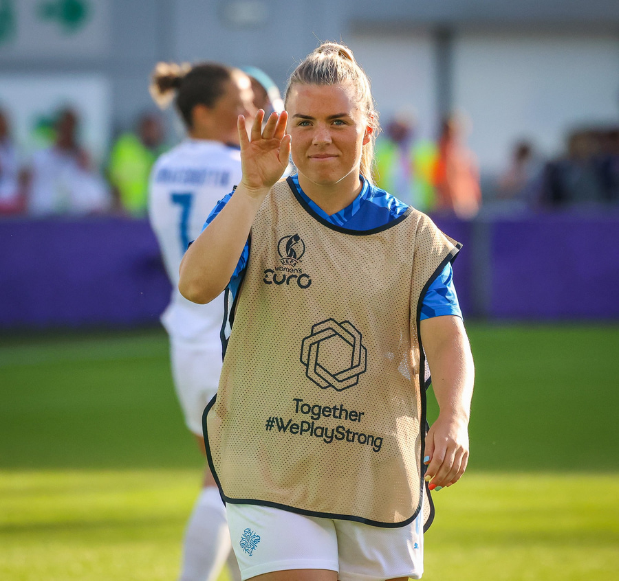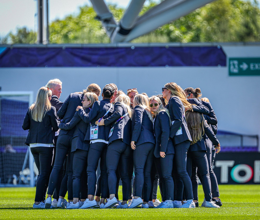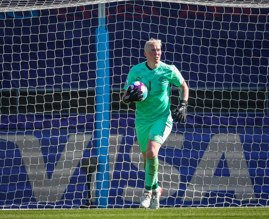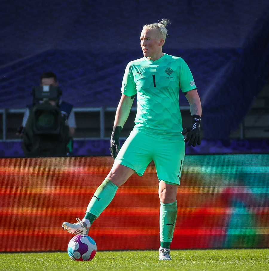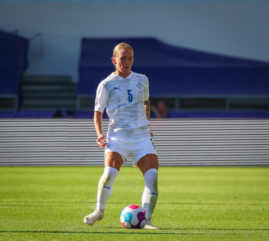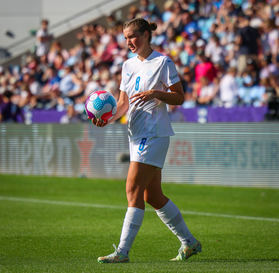 Berglind Björg tekur upphafsspyrnuna, Ísland byrjar með boltann!