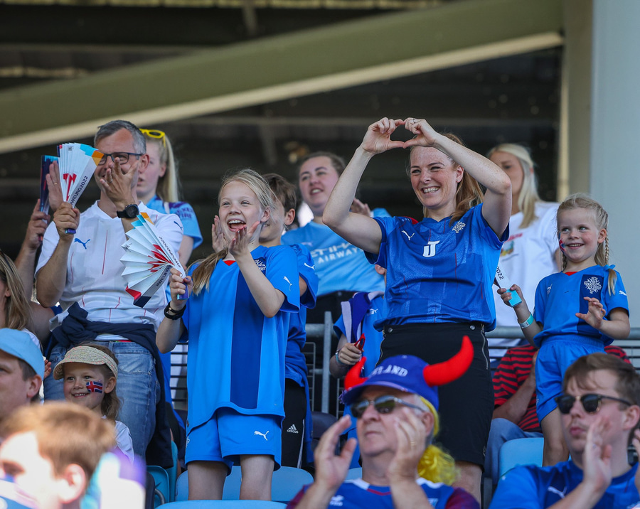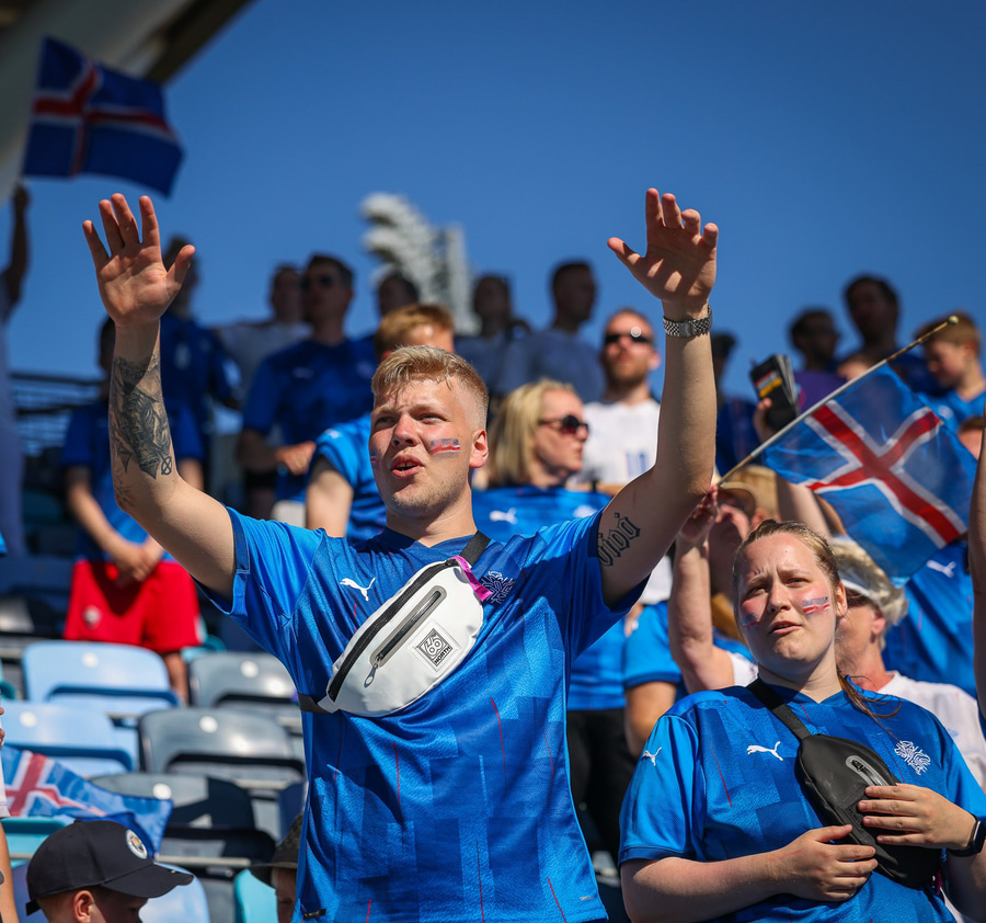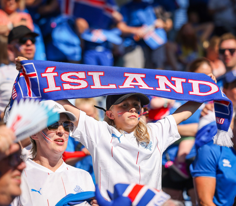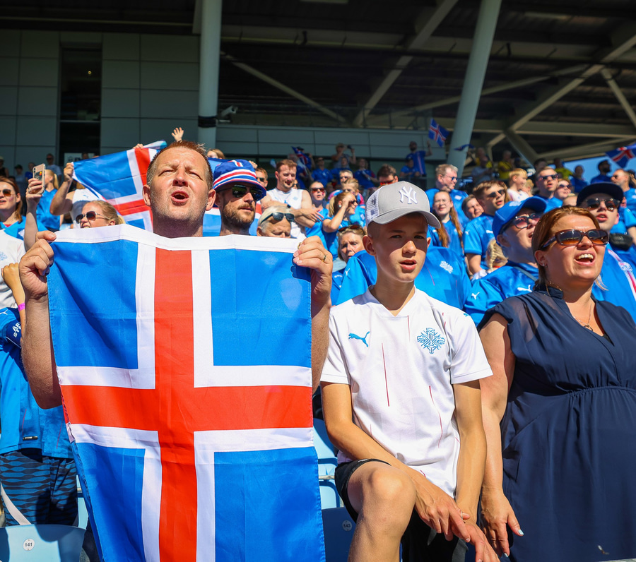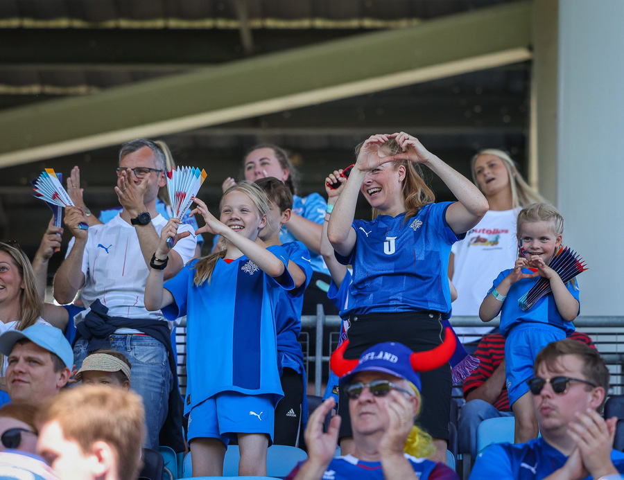 Tólfan heldur vel um taumana og stemningin er sérdeilis prýðileg hjá stuðningsfólki Íslands.