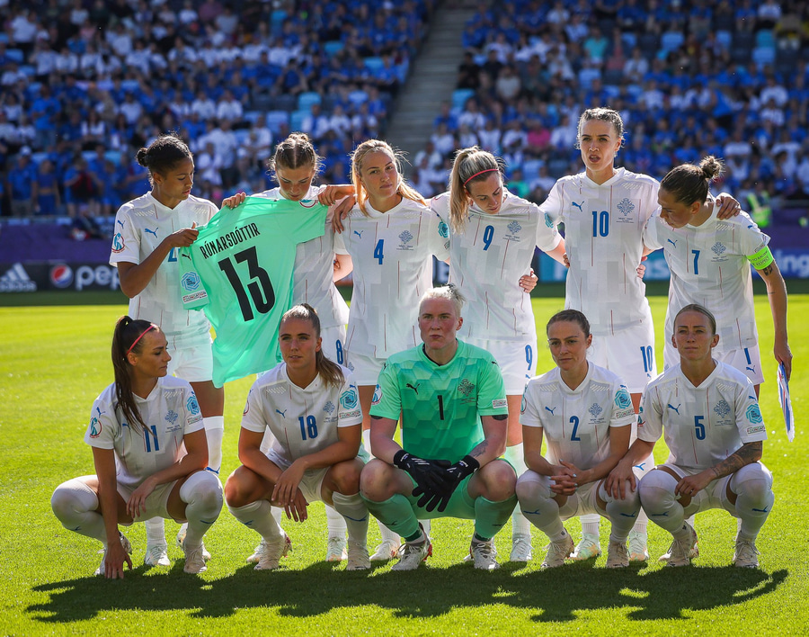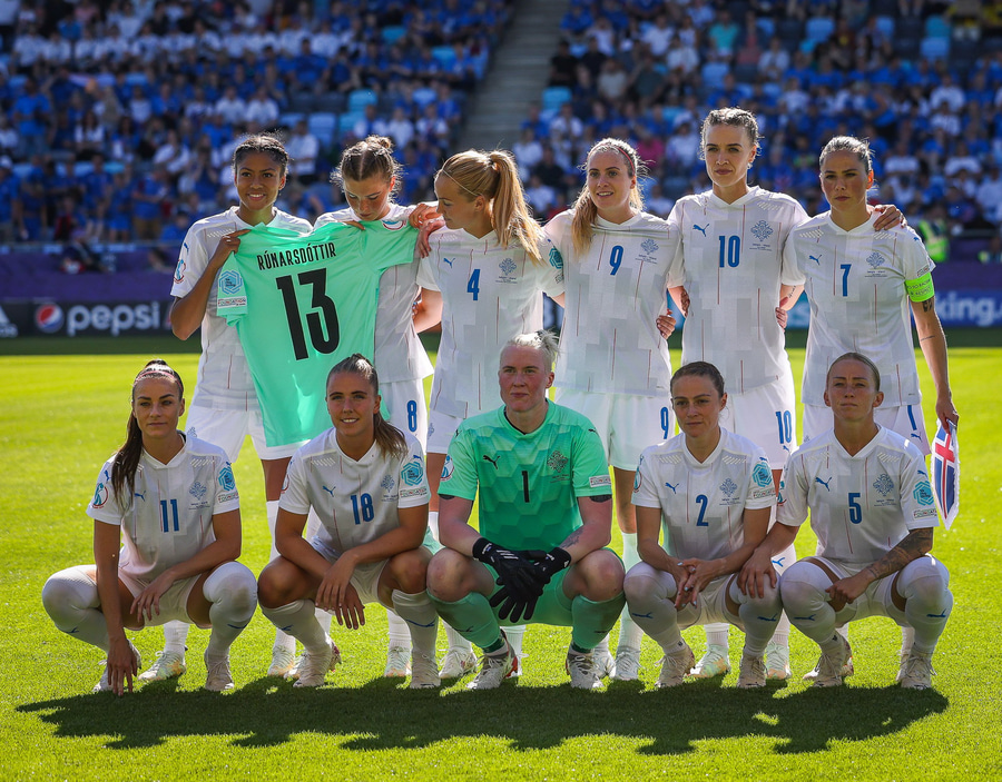 Íslenska liðið hélt á treyju númer 13 á liðsmyndinni fyrir leik. Liðið gerði það væntanlega vegna þeirra meiðsla sem Cecilía Rán Rúnarsdóttir varð fyrir á dögunum. Hún var í landsliðshópnum en varð fyrir því óláni að fingurbrotna á æfingu og verður ekki með á mótinu.