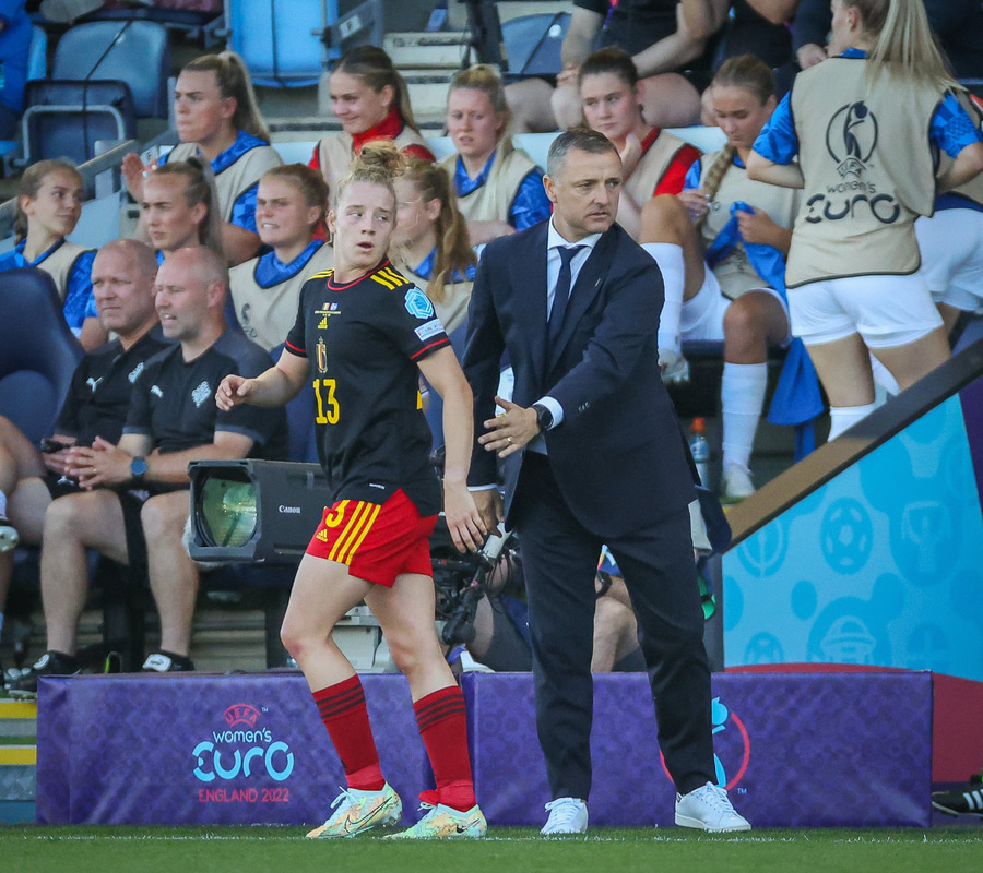 Vel varið hjá Söndru! Wullaert með gott skot sem er á leiðinni í fjærhornið en Sandra ver boltann til hliðar og Belgar eiga horn.