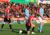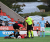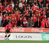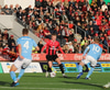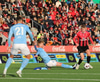 Pablo Punyed tekur spyrnuna en hún fer framhjá.