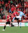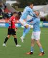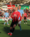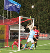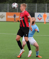 Birmancevic tekur spyrnuna á hausinn á Kiese sem skallar boltann yfir.