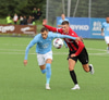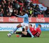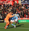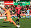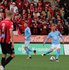 Erlingur Agnarsson fær boltann hægra megin og á frábæran bolta inn á teiginn og Helgi nær ekki að setja tánna í boltann og Malmö koma boltanum í burtu.