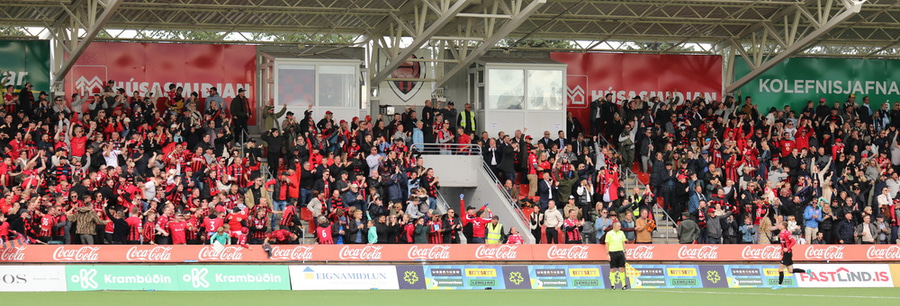 Áhorfendur eru mættir í stúkuna og það eru mikil læti byrjuð að skapast, leikmenn liðanna eru farin til búninsherbegja og það styttist í að flautað verði til leiks hérna á heimavelli hamingjunnar!