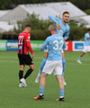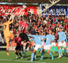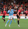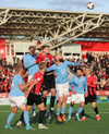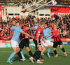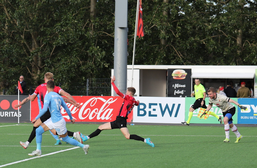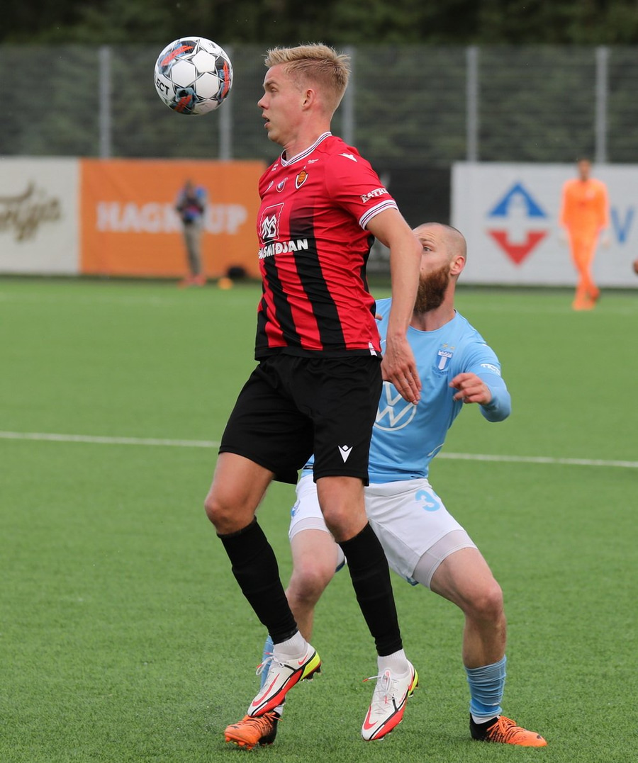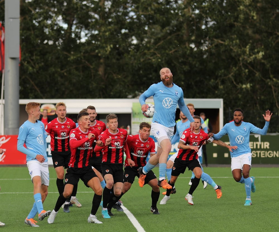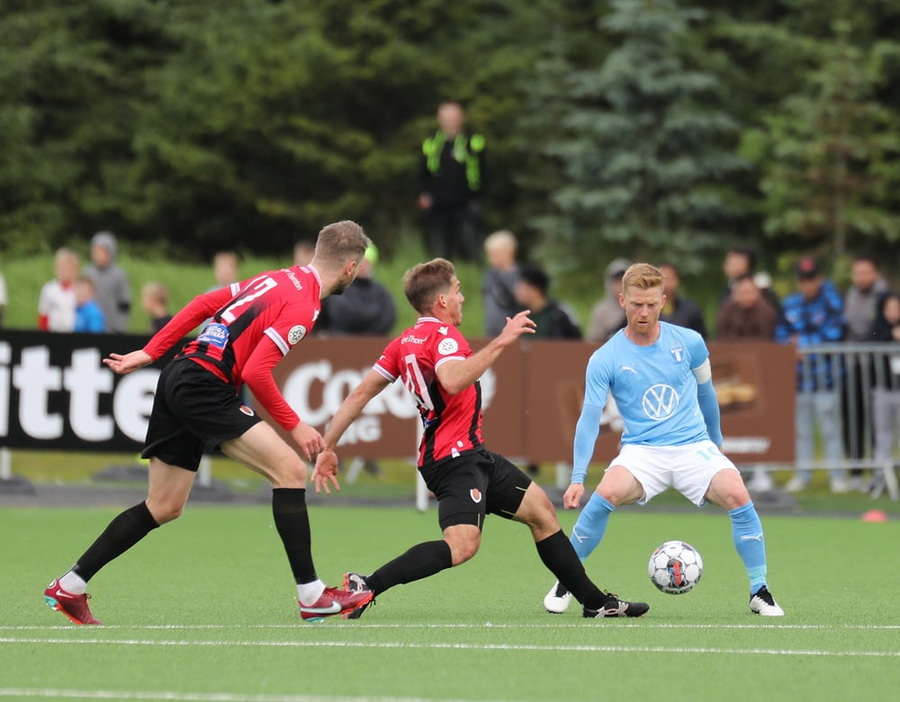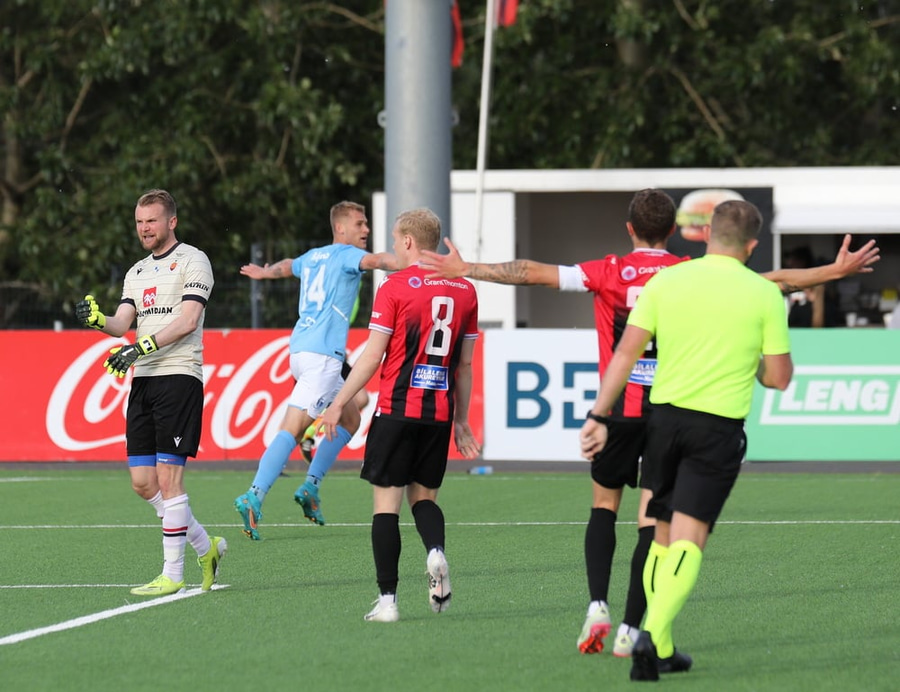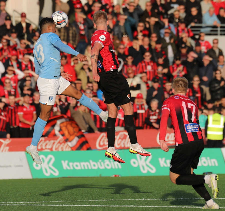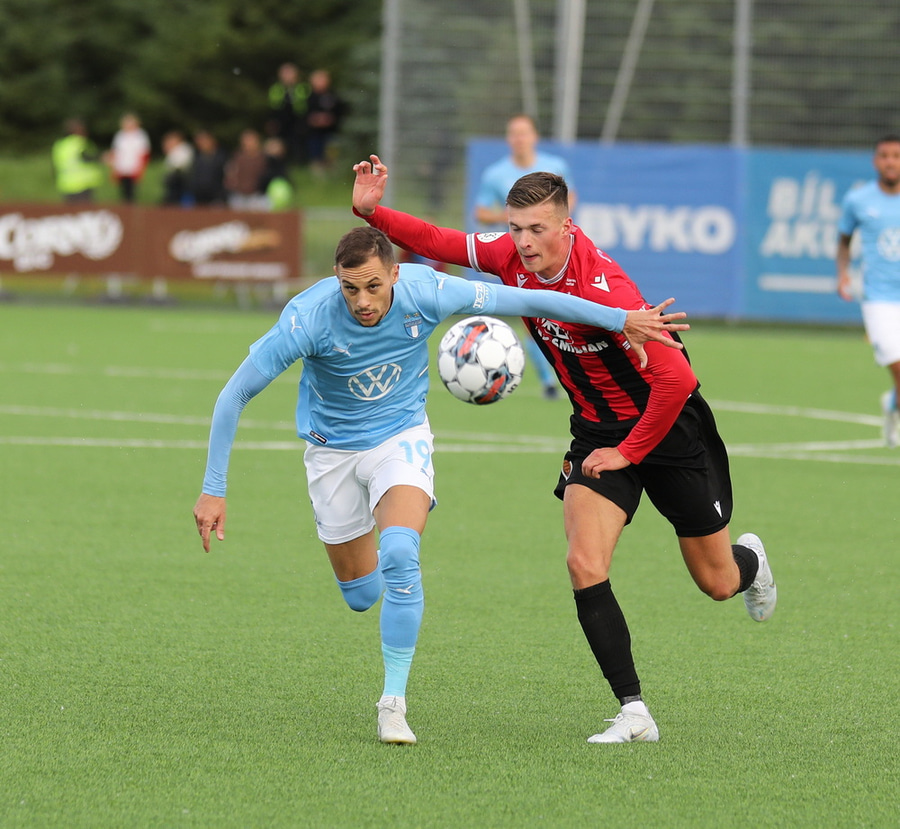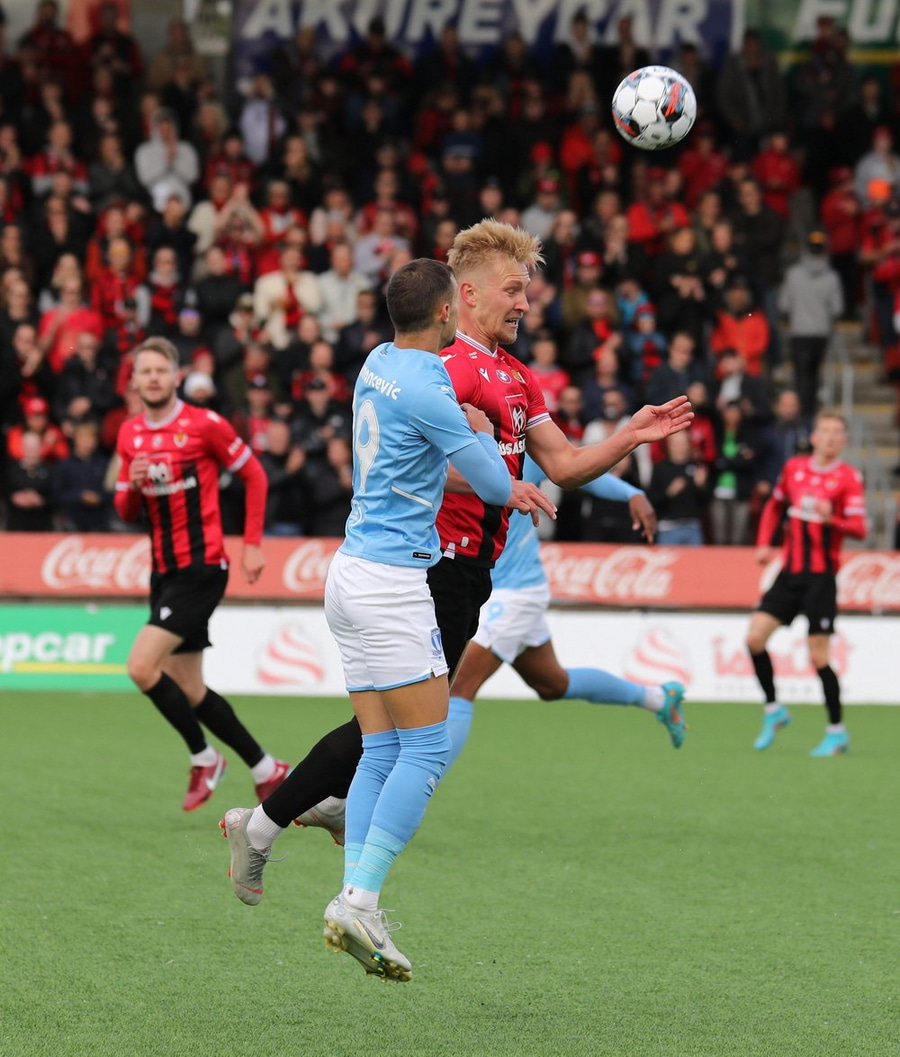 Pablo tekur spyrnuna sem Malmö skalla boltann í burtu en Erlingur nær til boltans og nær skoti og boltinn fer af varnarmanni og á Karl Friðleif sem nær fyrirgjöf í átt að Nikolaj sem nær ekki að skalla boltann í netið.