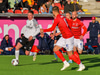 Þetta var léleg aukaspyna maður! Jesper bara chippar boltanum yfir vegginn og í hendurnar á Gunna.