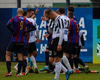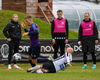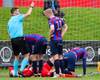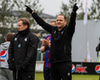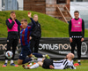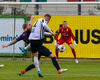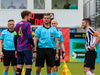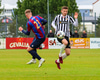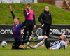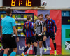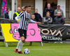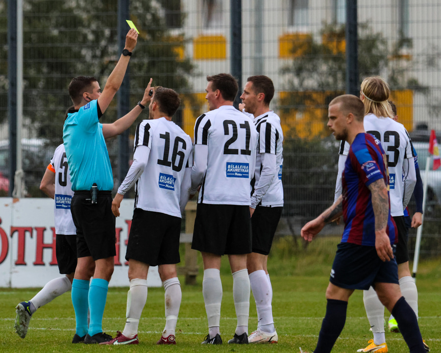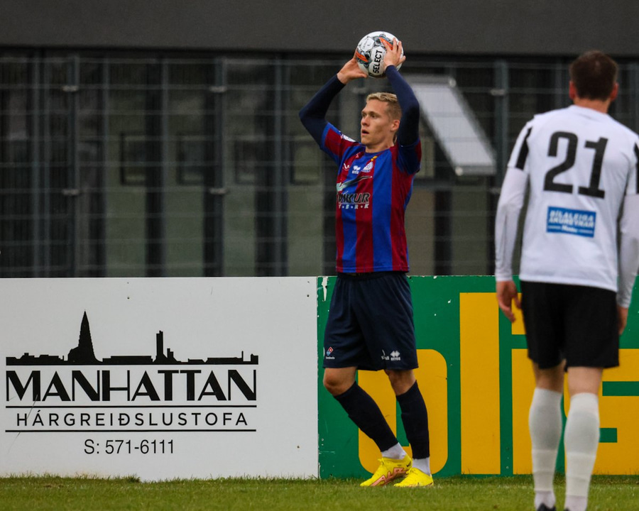 Kristófer Konráðs tekur spyrnuna fyrir leikni, hún kemur á fjærstöng þar sem Zean tekur boltann á magann og missir boltann frá sér.