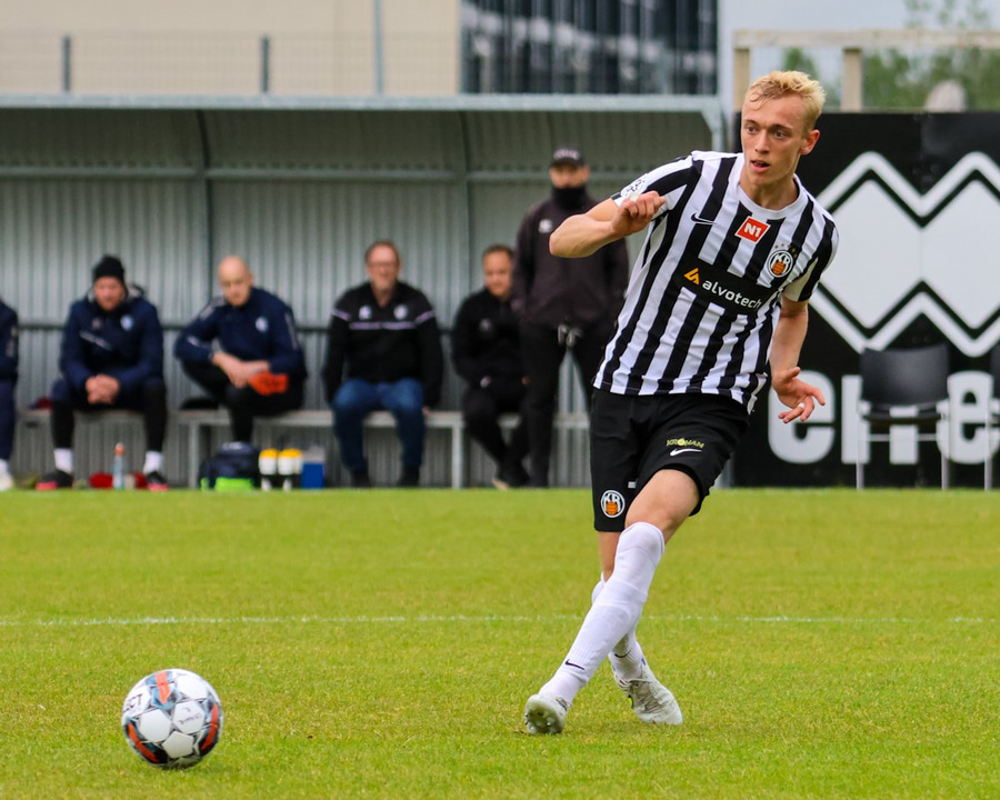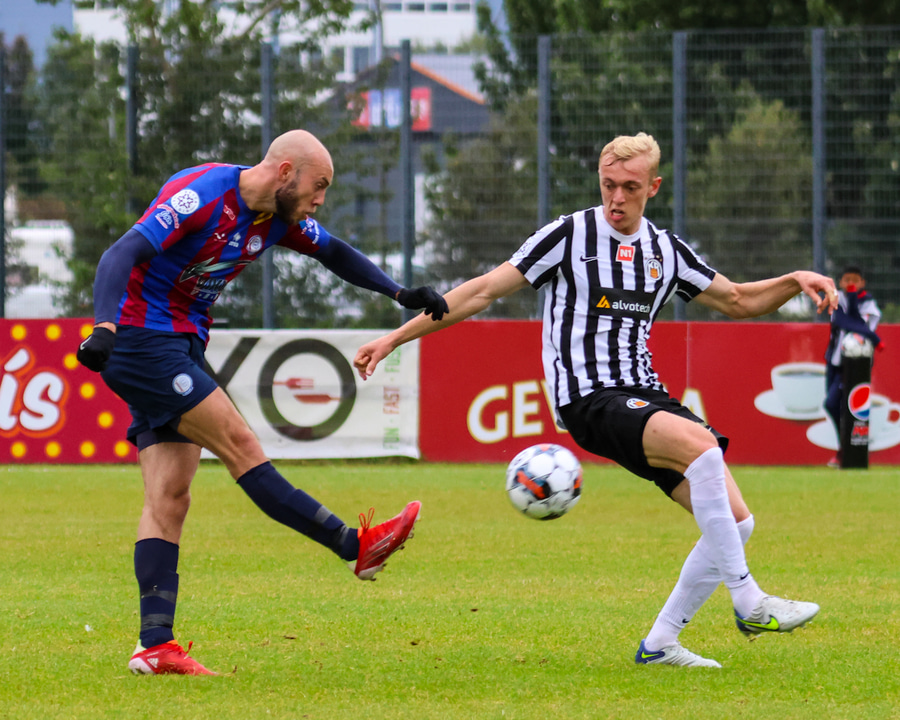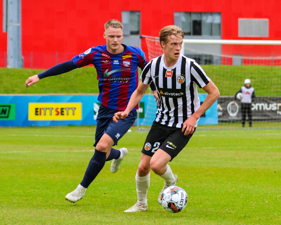Adam Örn á frábæra stungusendingu á Zean Dalügge, Aron Kristófer reynir að renna sér fyrir sendinguna en nær boltanum ekki og þá er Zean kominn í einn á einn stöðu við Beiti og hamrar boltann í þaknetið!